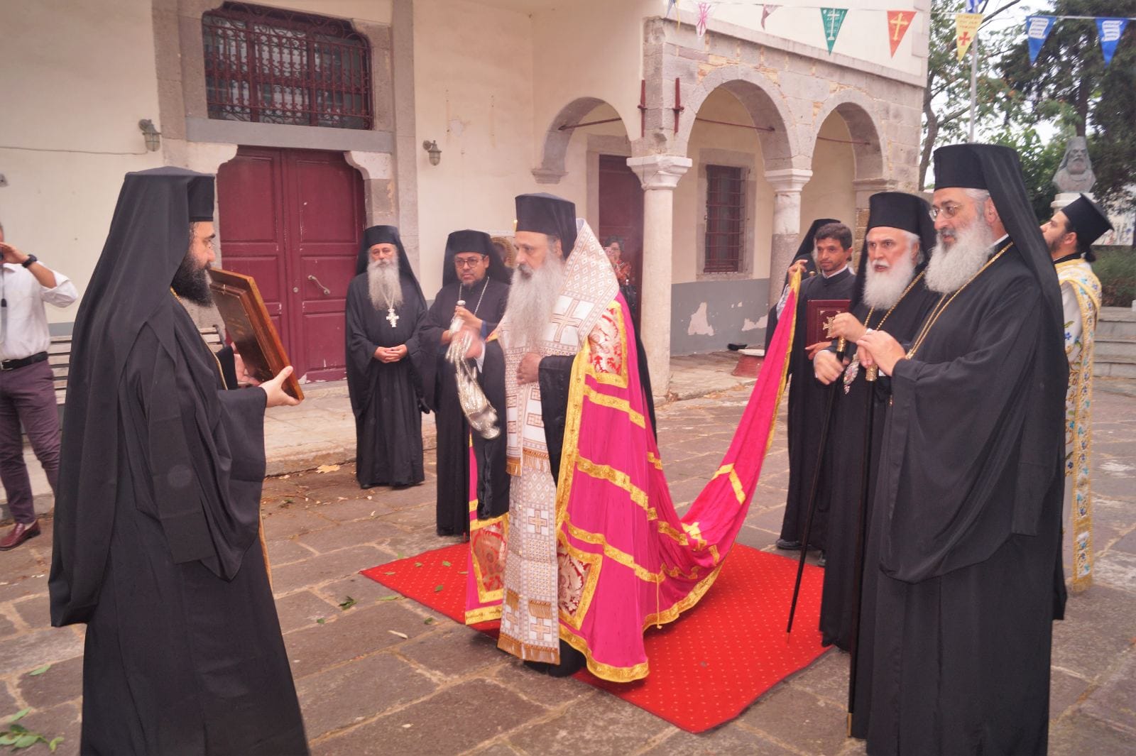 Τον εορτασμό λάμπρυναν με την παρουσία τους προσκεκλημένοι του Σεβασμιωτάτου Ποιμενάρχου μας κ.κ.Ιεροθέου, οι Σεβασμιώτατοι Μητροπολίτες Αλεξανδρουπόλες, Τραϊανουπόλεως & Σαμοθράκης κ.κ.Άνθιμος, Σταγών & Μετεώρων κ.κ.Θεόκλητος και ο ελληνομαθής Θεοφιλέστατος Επίσκοπος Άσσου (Βοηθός του Μητροπολίτου Μεξικού) κ.κ.Τιμόθεος ο οποίος και κήρυξε εμπνευσμένα τον Θείο Λόγο κατά την Ακολουθία του Εσπερινού.