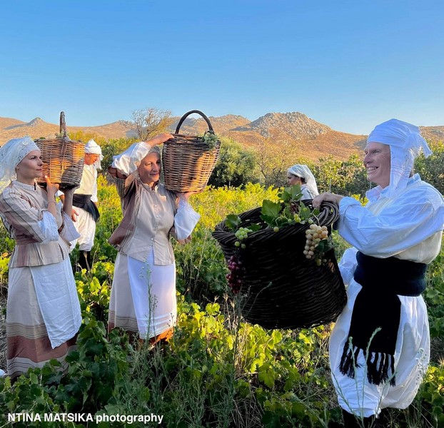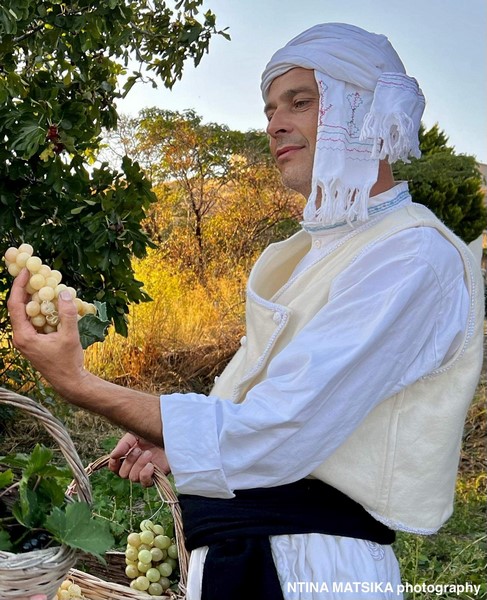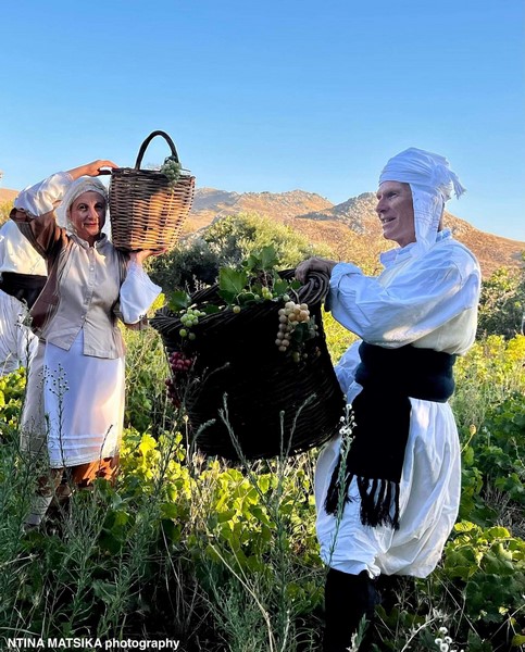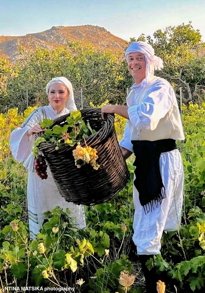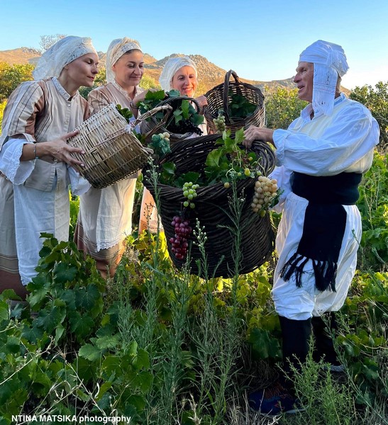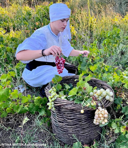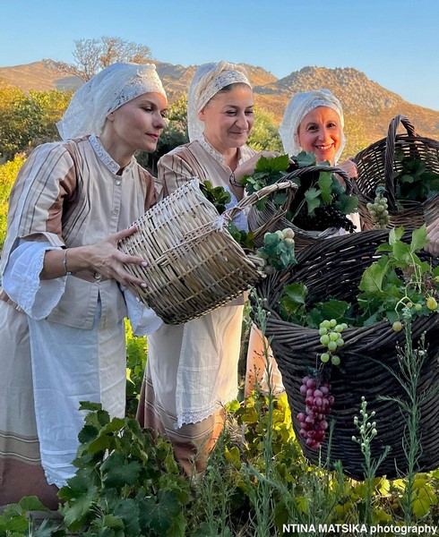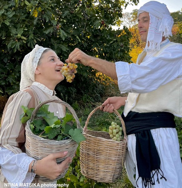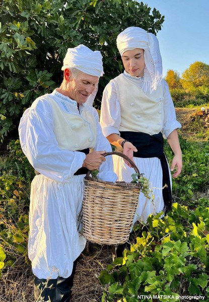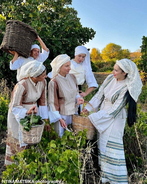 Μέλη του Ομίλου μας ντυμένα με τις τοπικές παραδοσιακές μας φορεσιές και με καλλιτεχνική πάντα διάθεση ,αποτύπωσαν στο φωτογραφικό φακό της κυρίας Ντίνας Ματσικά την ομορφιά του τρύγου, το μοναδικό χρώμα των αμπελιών και σταφυλιών, το κέφι και το χαμόγελο που ήταν άρρηκτα συνδεδεμένα με τη συγκεκριμένη διαδικασία.