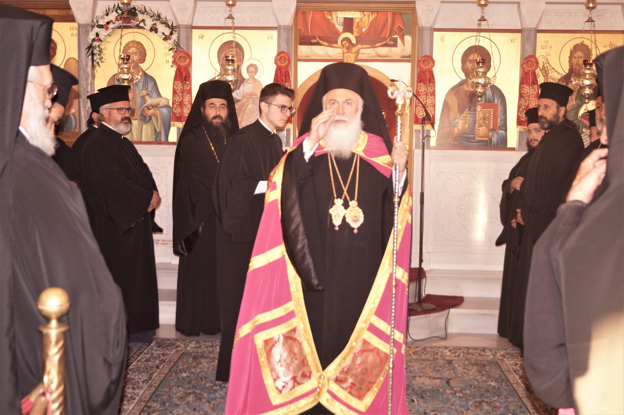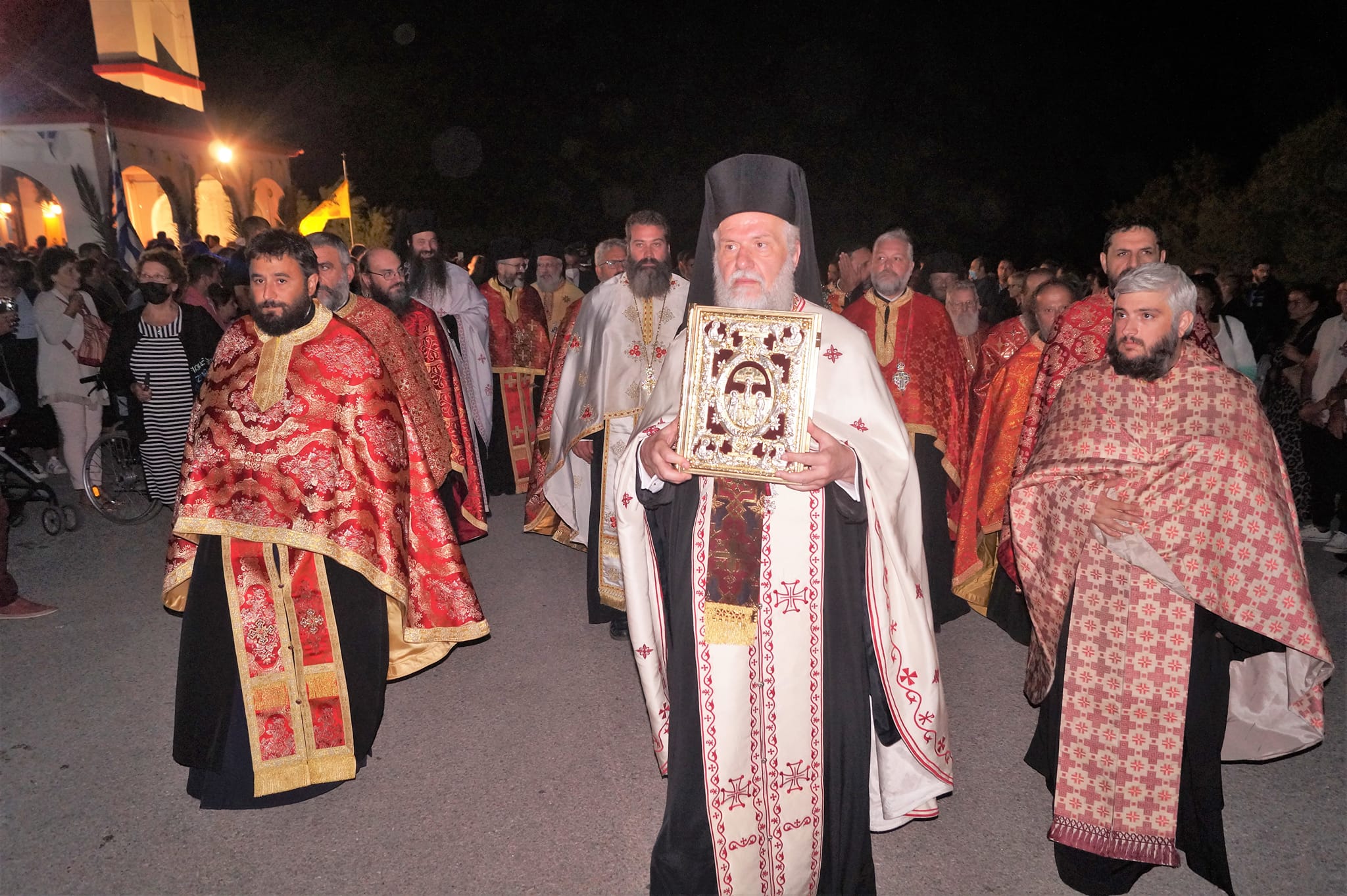 Το εσπέρας της Τρίτης 6 Σεπτεμβρίου 2022, Παραμονή της Εορτής, τελέστηκε Μέγας Πανηγυρικός Εσπερινός, στον οποίο χοροστάτησε ο Σεβ. Ποιμενάρχης μας κ. Ιερόθεος, πλαισιούμενος από πλήθος κληρικών.