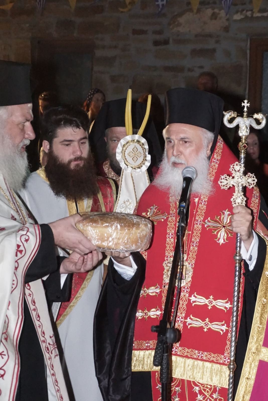 Εν συνεχεία, ακολούθησε η καθιερωμένη αρτοκλασία, μετά το πέρας της οποίας ο Σεβασμιώτατος έκλεισε την ιερά ακολουθία, ευχαριστώντας τους παρισταμένους επισήμους με πρώτο τον αξιότιμο Αντιπρόεδρο της Βουλής των Ελλήνων και Βουλευτή του Νομού μας, κ. Χαράλαμπο Αθανασίου, που πάντα δίνει το παρόν και στηρίζει ενεργά κάθε εκκλησιαστική προσπάθεια, τον Δήμαρχο Λήμνου κ. Δημήτριο Μαρινάκη, για την πρόθυμη και πολύτιμη συμβολή των εργαζομένων του Δήμου στην επιτυχημένη διοργάνωση της πανηγύρεως, τον Ταξίαρχο του Στρατού, κ. Κωνσταντίνο Τακόπουλο, ο οποίος μερίμνησε για την παρουσία του στρατιωτικού αγήματος και της φιλαρμονικής μπάντας, που λάμπρυναν τις λατρευτικές εκδηλώσεις, τους παρόντες κληρικούς και ιδιαιτέρως τον ομιλητή π. Χρυσόστομο Χρυσόπουλο για το καρδιακό και διδακτικό κήρυγμά του, τον Γενικό Αρχιερατικό Επίτροπο της Ιεράς Μητροπόλεως μας, Πανοσιολ. Αρχιμ. π. Ιερώνυμο Σχίζα, που σε συνεργασία με τους εκκλησιαστικούς επιτρόπους και τους διακονητές του Ιερού Προσκυνήματος, ανέλαβε την όλη οργάνωση και την προετοιμασία της Ιεράς Πανηγύρεως του Πολιούχου του Τόπου μας και τέλος όλους τους ευλαβείς προσκυνητές, οι οποίοι κατέκλυσαν τον ευρύτερο χώρο του Προσκυνήματος εκδηλώνοντας την βαθύτατη πίστη και ανάγκη τους για μεσιτεία του Αγίου με σωστική επέμβαση στην καθημερινότητα της ζωής μας.
