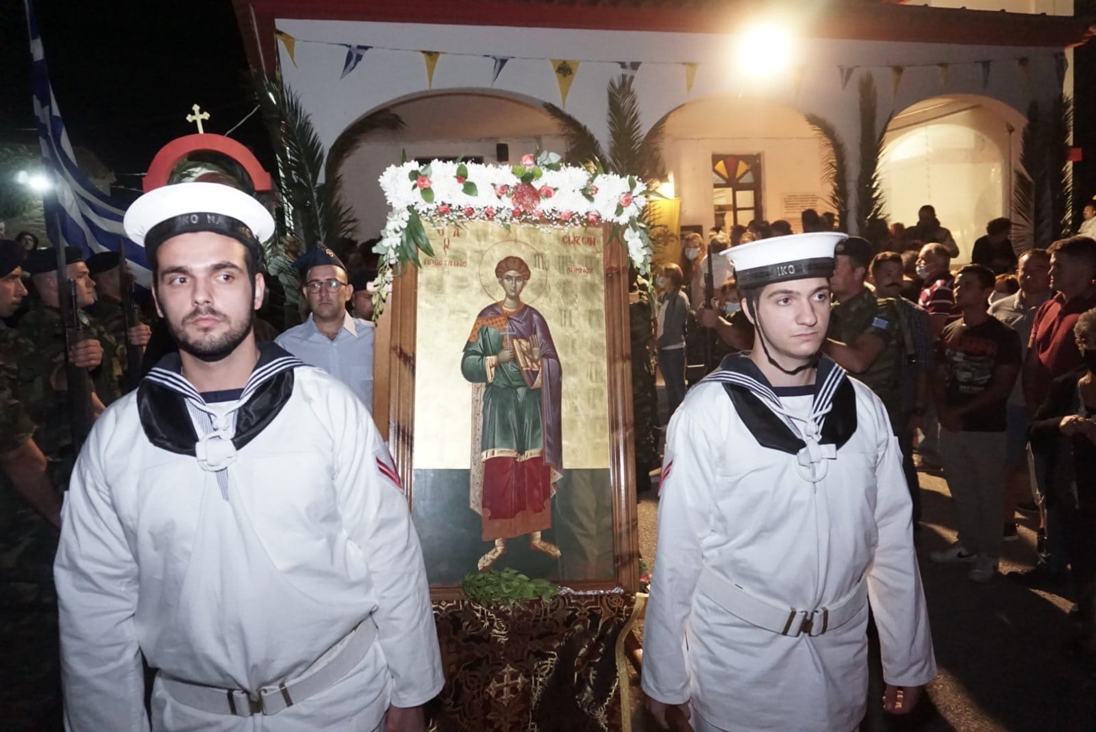 Πριν το πέρας του εσπερινού, πραγματοποιήθηκε πάνδημος λιτάνευση της εφεστίου ιεράς εικόνος και του αποτμήματος του ιερού λειψάνου του Αγίου Σώζοντος, με τη συνοδεία τιμητικού αγήματος και φιλαρμονικής μπάντας του στρατού.