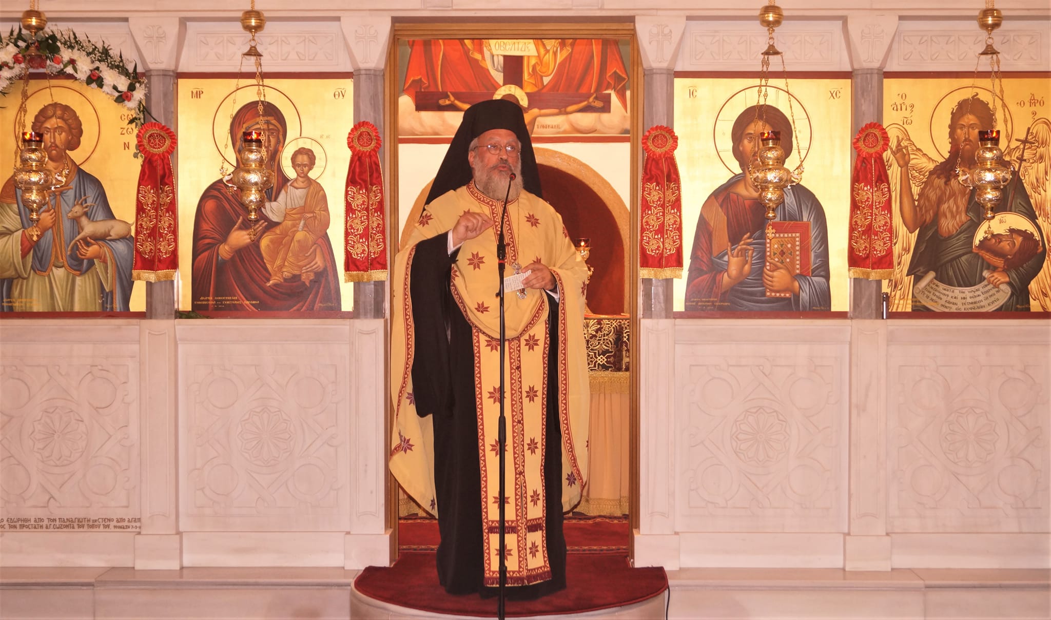 Τέλος, παρότρυνε πάντας να ομολογούμε ανεμπόδιστα την πίστη μας στο Χριστό και να μετέχουμε ενεργά στα ιερά μυστήρια της Εκκλησίας, για να γνωρίζουμε εμπειρικά την μισθαποδοσία του Μόνου και Αληθινού Σωτήρος Χριστού.