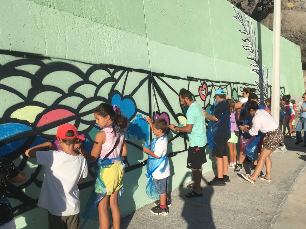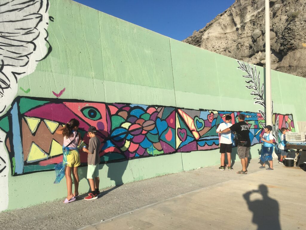 Η εικαστική δράση της UrbanAct, κλείνει τον κύκλο της φέτος στο νησί, αφού ολοκληρώθηκε πια η συλλογική τοιχογραφία με τη συμμετοχή και την ευφάνταστη παρέμβαση των παιδιών του Αγίου Ευστρατίου.