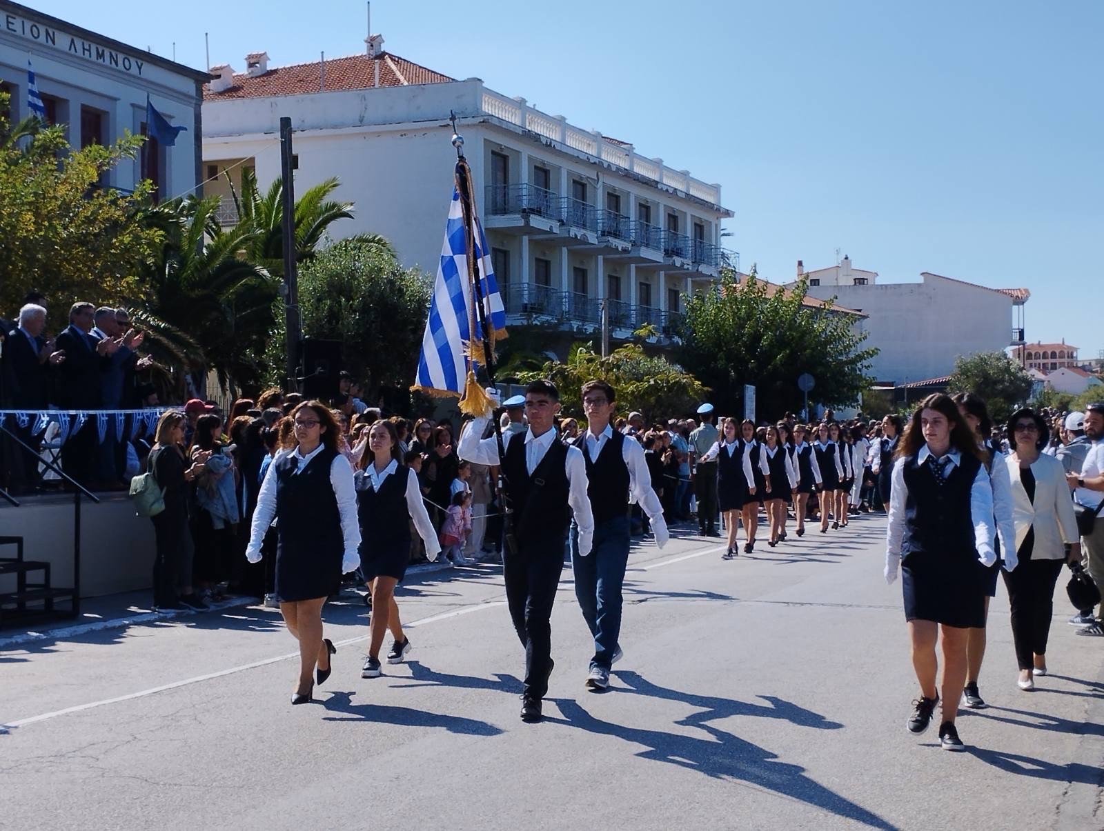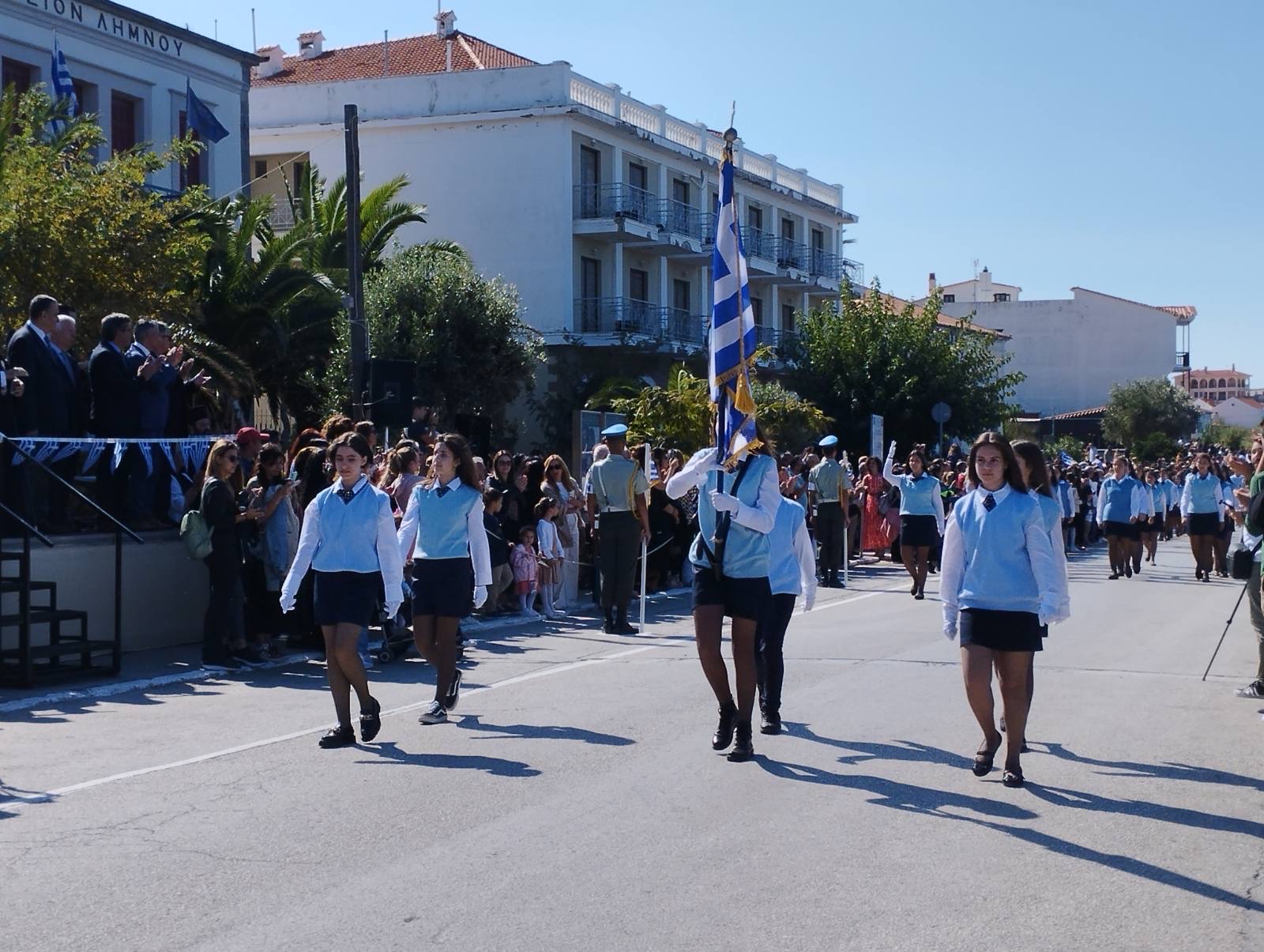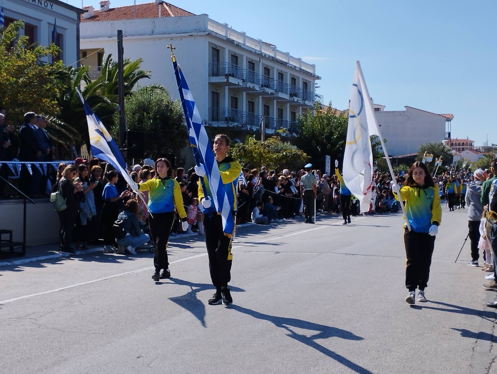 Μέσα σ ένα τέτοιο πλήθος λοιπόν, με παράστημα και υπερηφάνεια, παρήλασαν τα μαθητικά και στρατιωτικά τμήματα, ενώ την παρέλαση συνέδραμαν και εκπρόσωποι αθλητικών σωματείων του Αιγαίου, που βρίσκονται στη Λήμνο για να συμμετέχουν στους 33ους Αιγαιοπελαγίτικους Αγώνες Στίβου, οι οποίοι ξεκινούν απόψε, στο Στάδιο της Μύρινας.