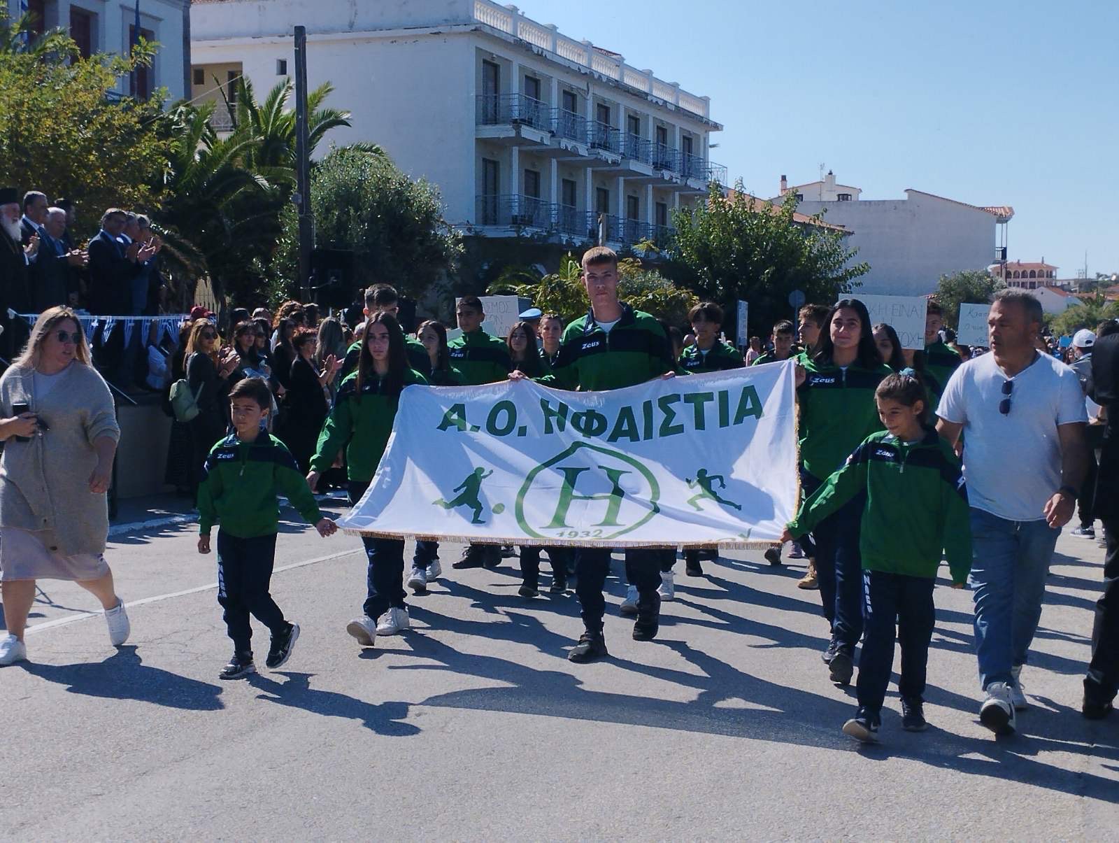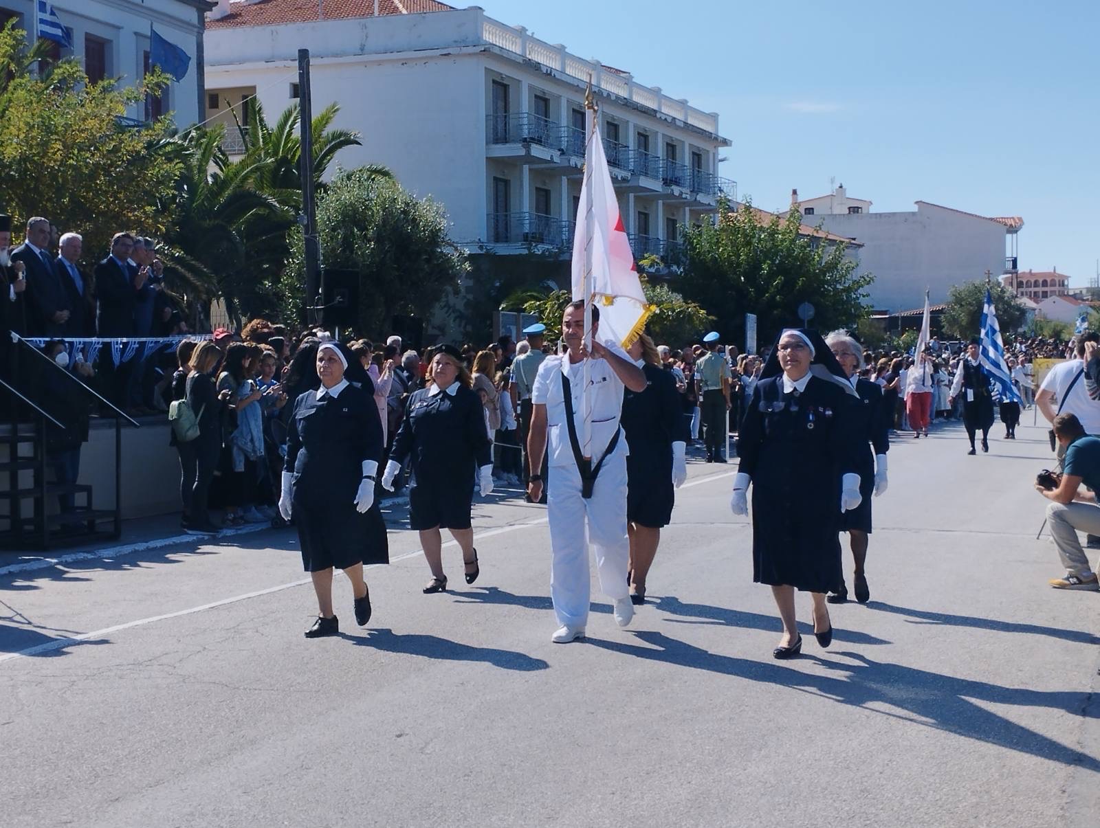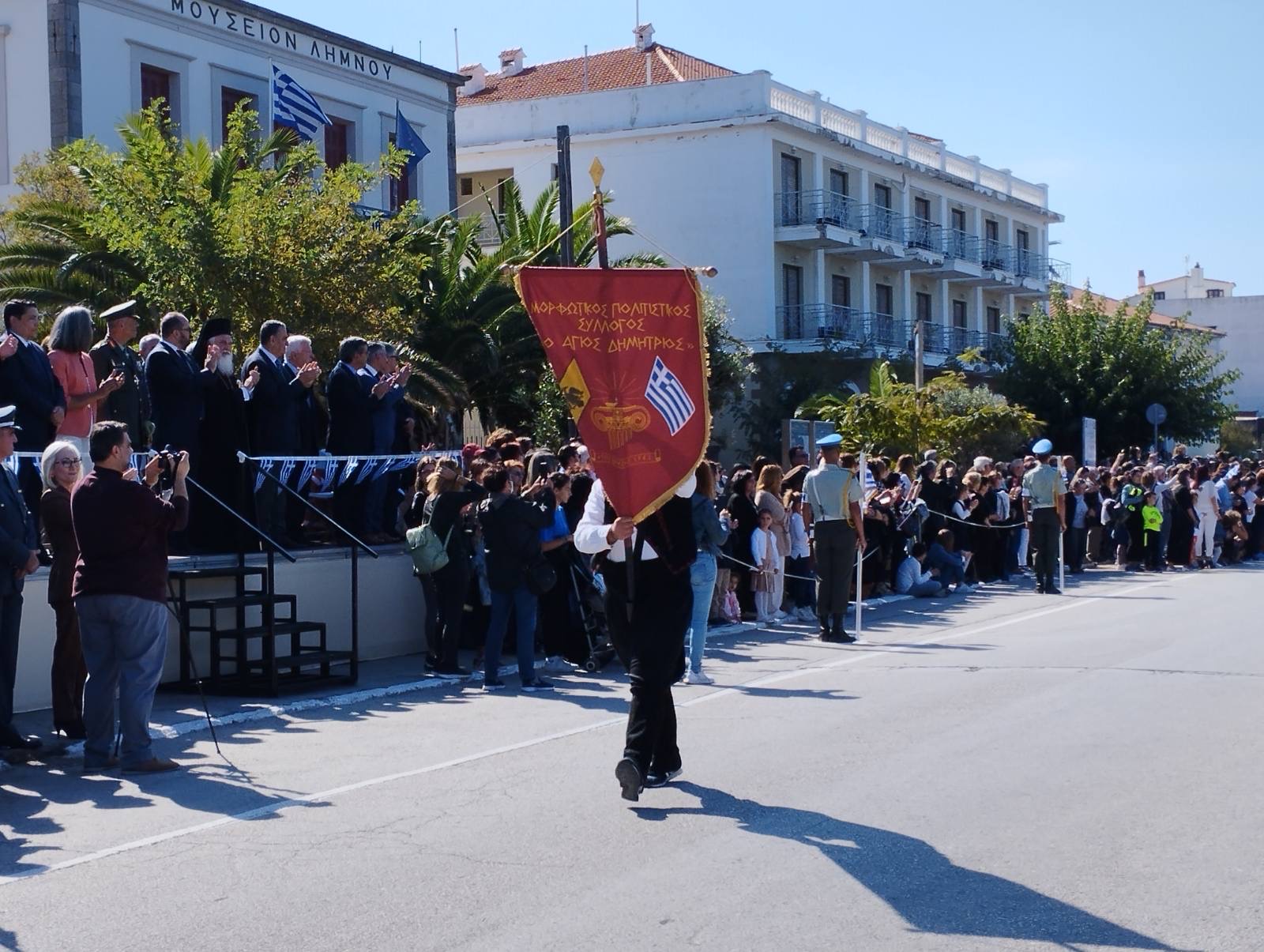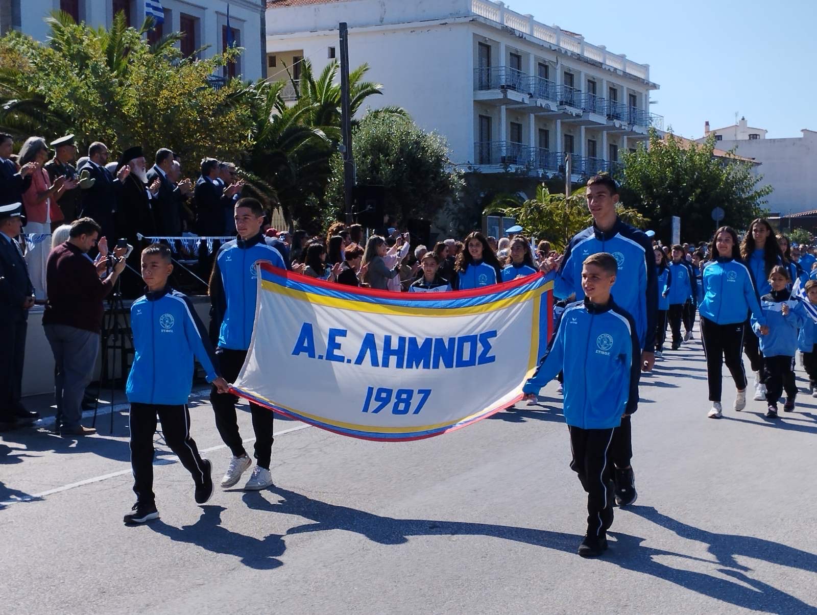 Μέσα σ ένα τέτοιο πλήθος λοιπόν, με παράστημα και υπερηφάνεια, παρήλασαν τα μαθητικά και στρατιωτικά τμήματα, ενώ την παρέλαση συνέδραμαν και εκπρόσωποι αθλητικών σωματείων του Αιγαίου, που βρίσκονται στη Λήμνο για να συμμετέχουν στους 33ους Αιγαιοπελαγίτικους Αγώνες Στίβου, οι οποίοι ξεκινούν απόψε, στο Στάδιο της Μύρινας.