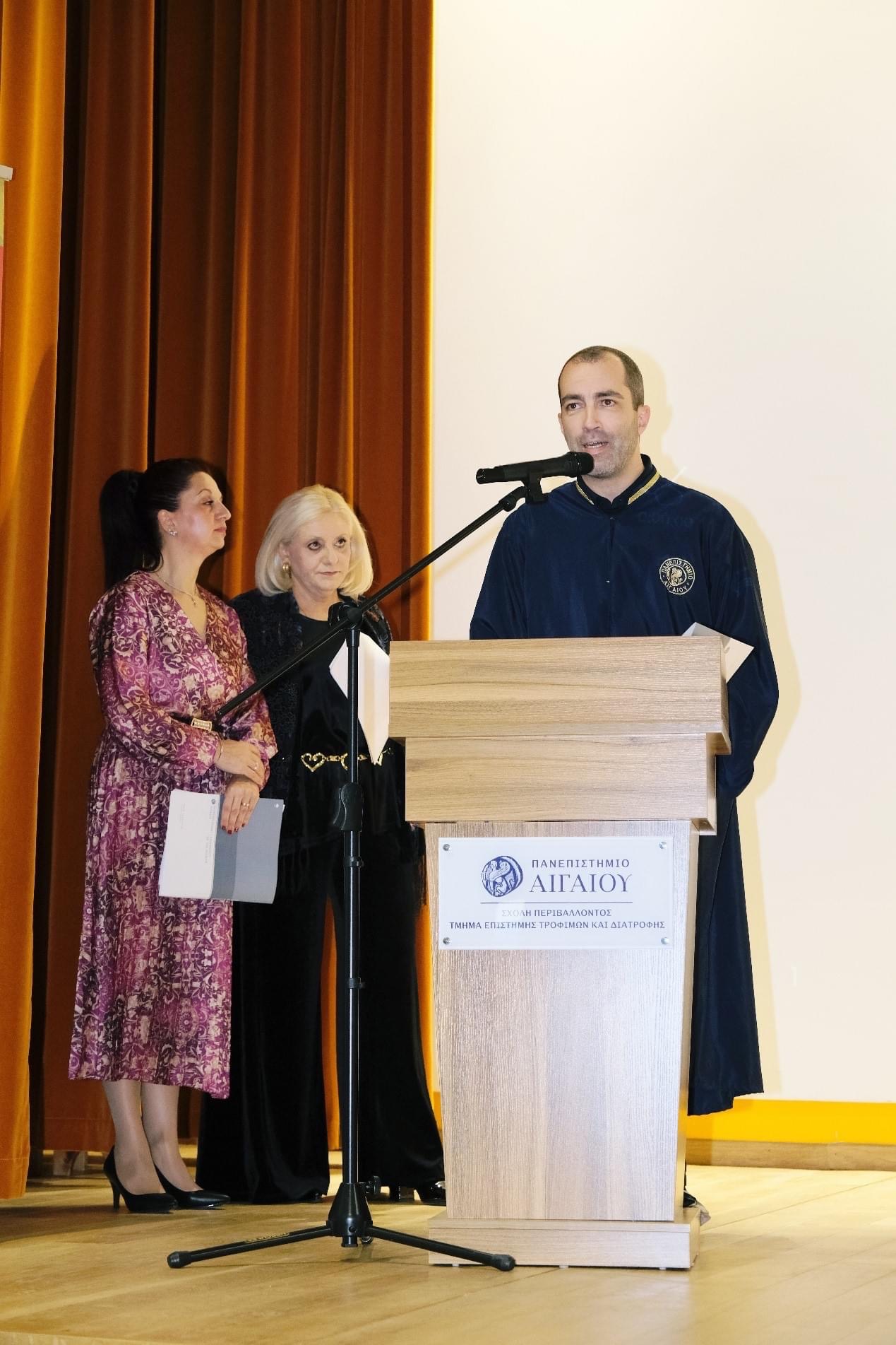 Ο Πρόεδρος του Τμήματος Επιστήμης Τροφίμων και Διατροφής, Αναπληρωτής Καθηγητής Κωνσταντίνος Γκατζιώνης απένειμε τα πτυχία στους απόφοιτους.