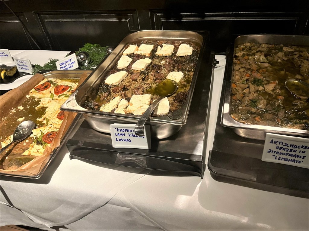 Οι καλεσμένοι γεύτηκαν Λημνιακά εδέσματα απο την εταιρεία Χρυσάφη και δοκίμασαν εξαιρετικό κρασί της εταιρείας Χατζηγεωργίου, που ήταν χορηγοί στην εκδήλωση και που η ένωση ξενοδόχων ευχαριστεί θερμά, όπως και την εταιρεία #Varos SA.