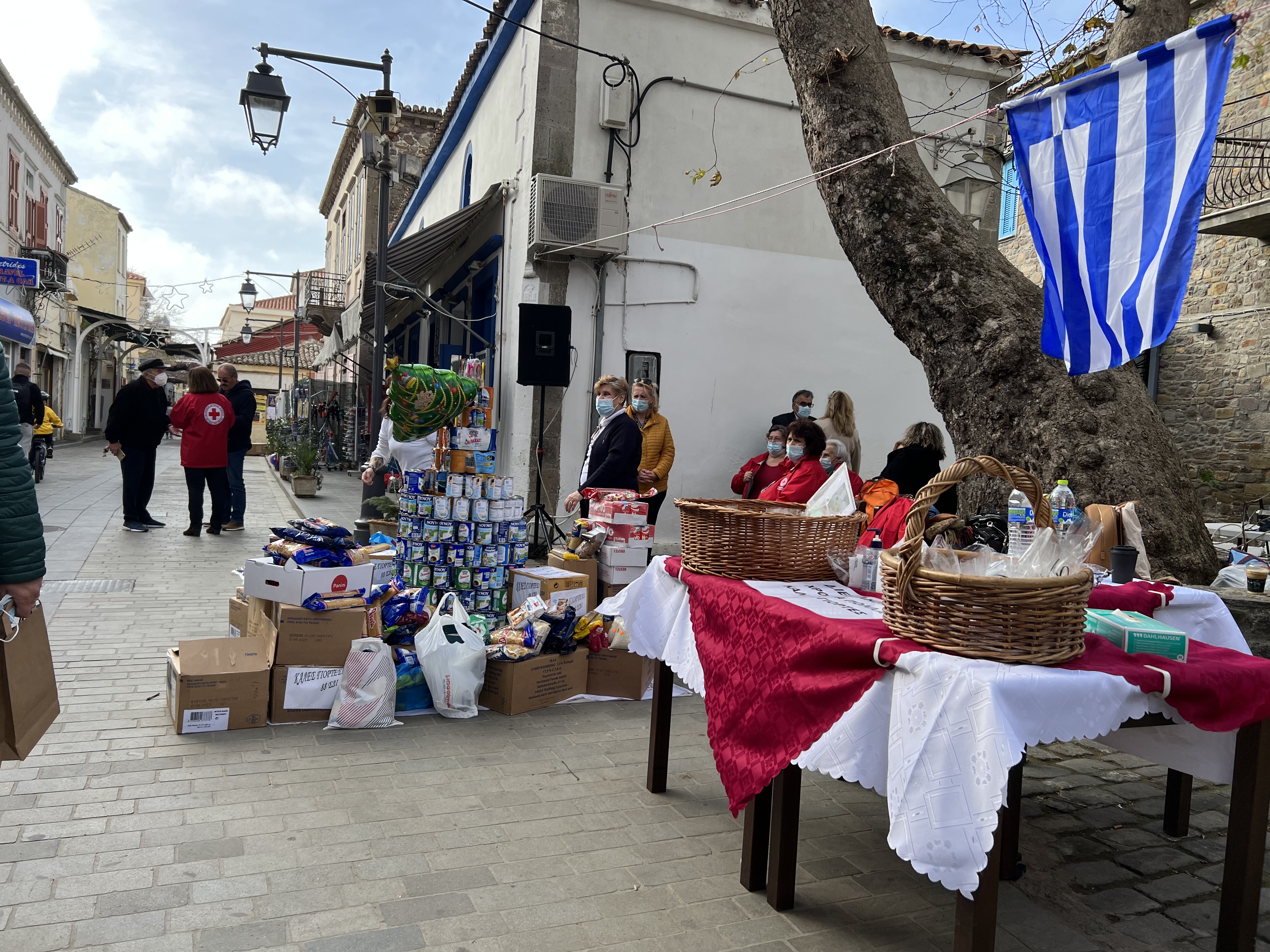 Γονείς με τα παιδιά τους, γιαγιάδες με τα εγγονάκια τους, σύλλογοι, πολιτιστικοί ή αθλητικοί, πέρασαν όλοι σήμερα από την αγορά της Μύρινας, στο σημείο που κάθε χρόνο στήνεται το δέντρο και όλοι άφησαν από κάτι.