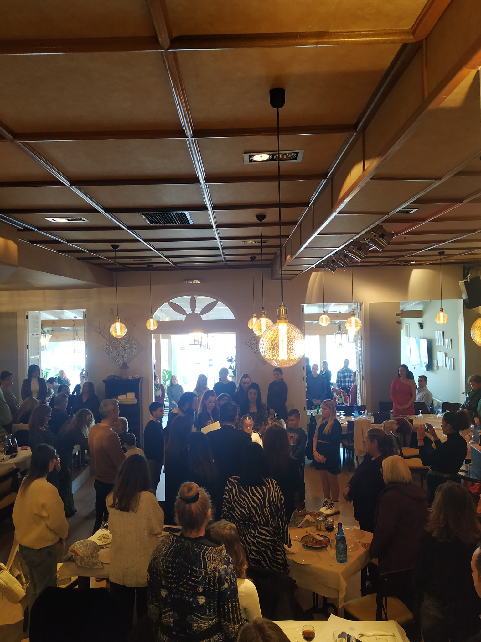 Η χαρά μας έγινε ακόμη μεγαλύτερη όταν ανάμεσα μας βρέθηκε μετά από καιρό ο συγχορευτής μας κος Γρηγόρης Δάλλης ο οποίος σε μια από τις πρόβες για τη Χριστουγεννιάτικη μας εκδήλωση τραυματίστηκε σοβαρά με αποτέλεσμα να χειρουργηθεί.Ο κος Δάλλης από μικροφώνου ευχαρίστησε τον Όμιλο τους φίλους και συγχορευτές του για τη συμπαράσταση που του παρείχαν το προηγούμενο πολύ δύσκολο για εκείνον διάστημα.