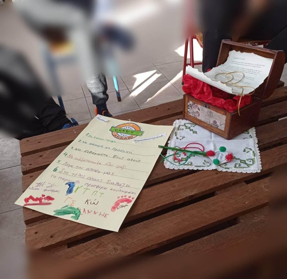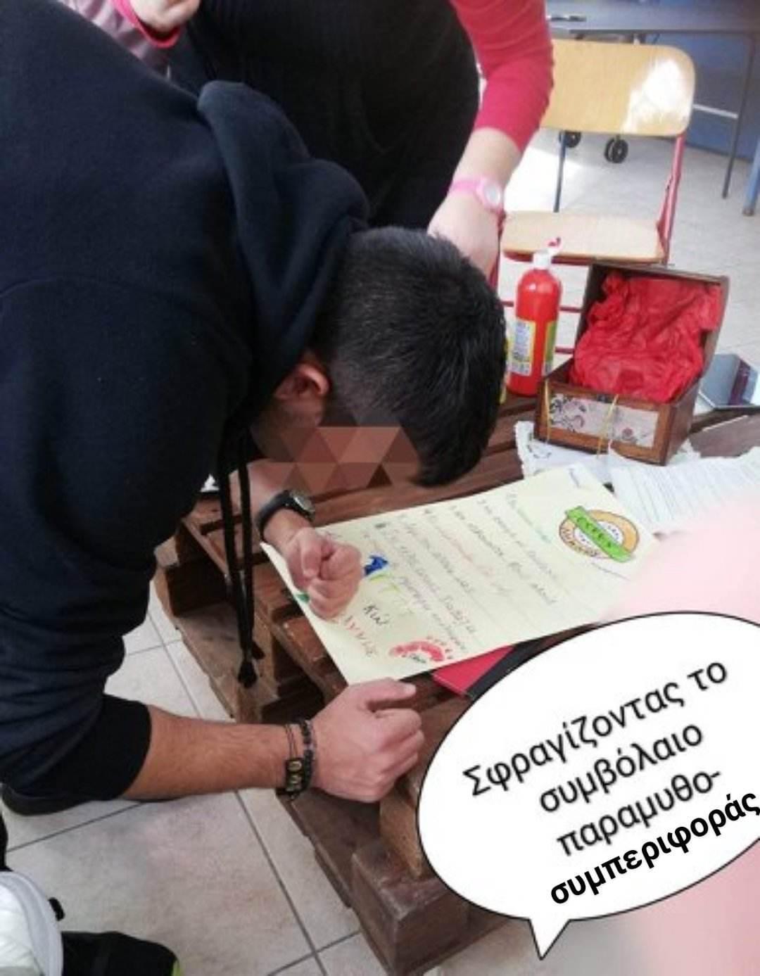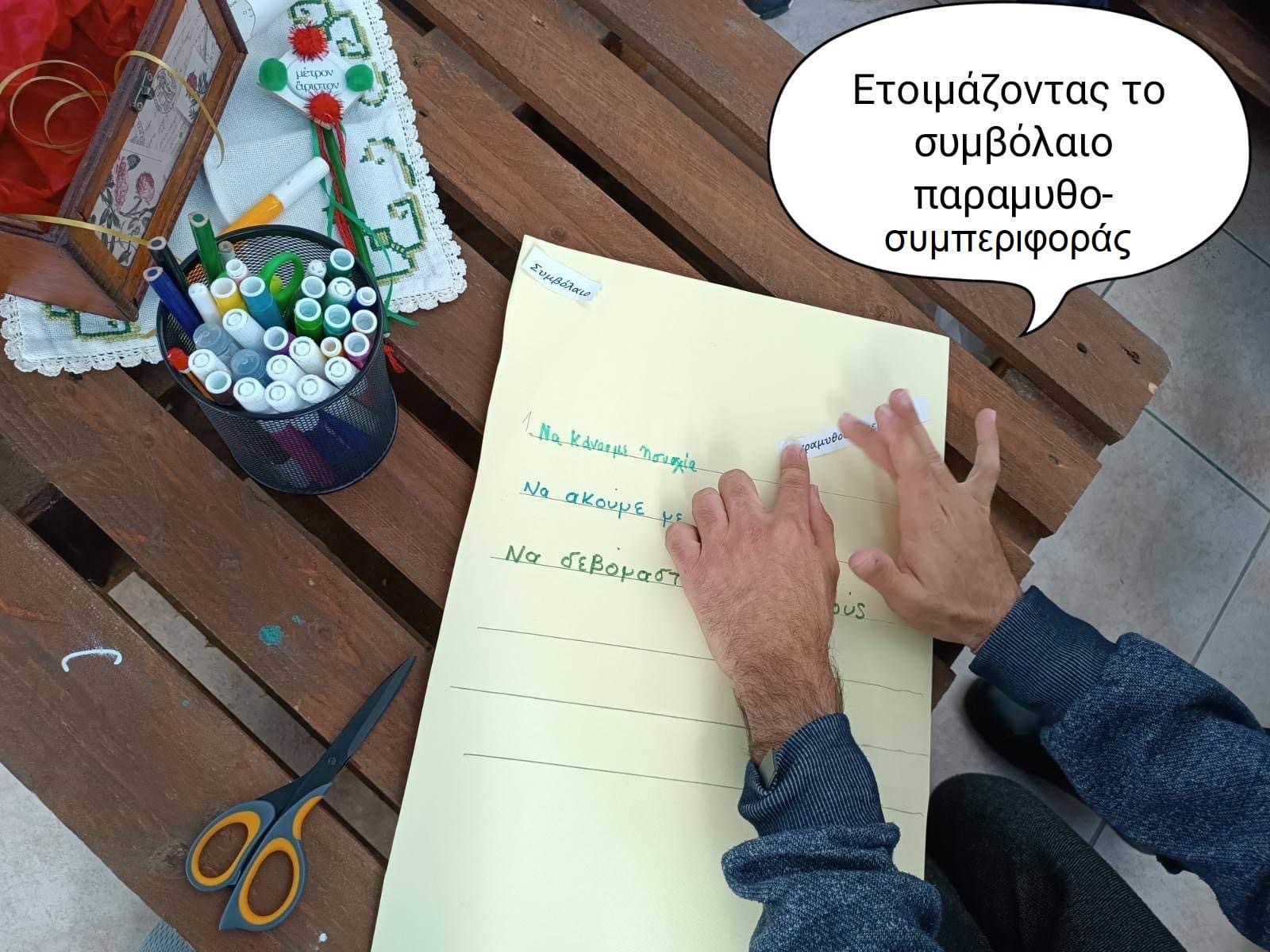 Στην πρώτη συνάντηση των μαθητών, καθορίστηκαν οι κανόνες που θα διέπουν τις συναντήσεις, μέσα από τη δημιουργία συμβολαίου παραμυθοσυμπεριφοράς.