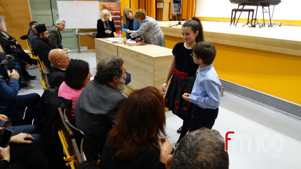 Μάλιστα, ο κ. Γαρουφαλλίδης και η αδελφή του Φωτεινή Μαρία Γαρουφαλίδου, παρέλαβαν τιμητική πλακέτα ενώ ιδιαίτερα συγκινητική, ήταν η στιγμή όταν τα δυο δύο εγγόνια του Δωρητή, εκπληρώνοντας την επιθυμία του, ο 10χρονος Νικόλαος Γαρουφαλίδης στο βιολί και η 13χρόνη Νικολία Γαρουφαλίδου επίσης στο βιολί, πλαισίωσαν μουσικά την εκδήλωση των εγκαινίων, ενώ στο πιάνο συνόδευσε τα δυο παιδιά ο καθηγητής κ. Διονύσης Μαλούχος καλλιτεχνικός Διευθυντής του Ωδείου «Φίλιππος Νάκας».
