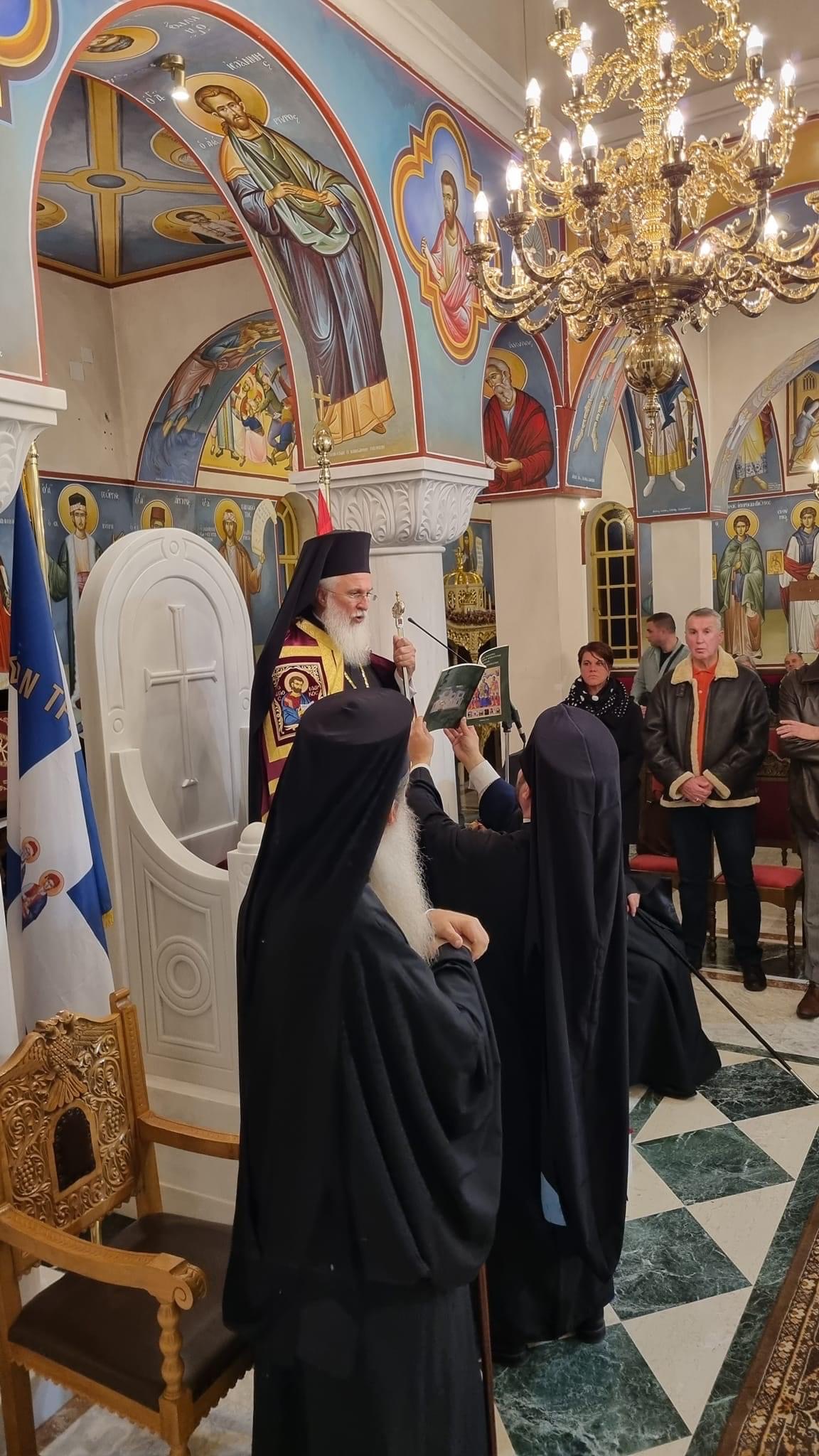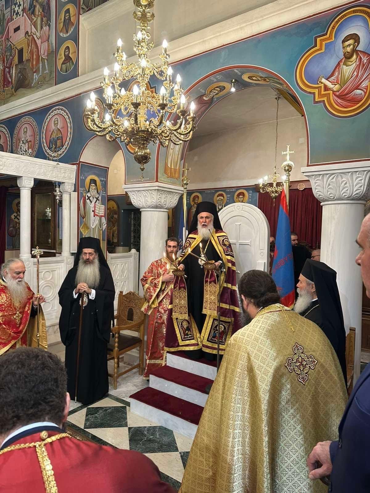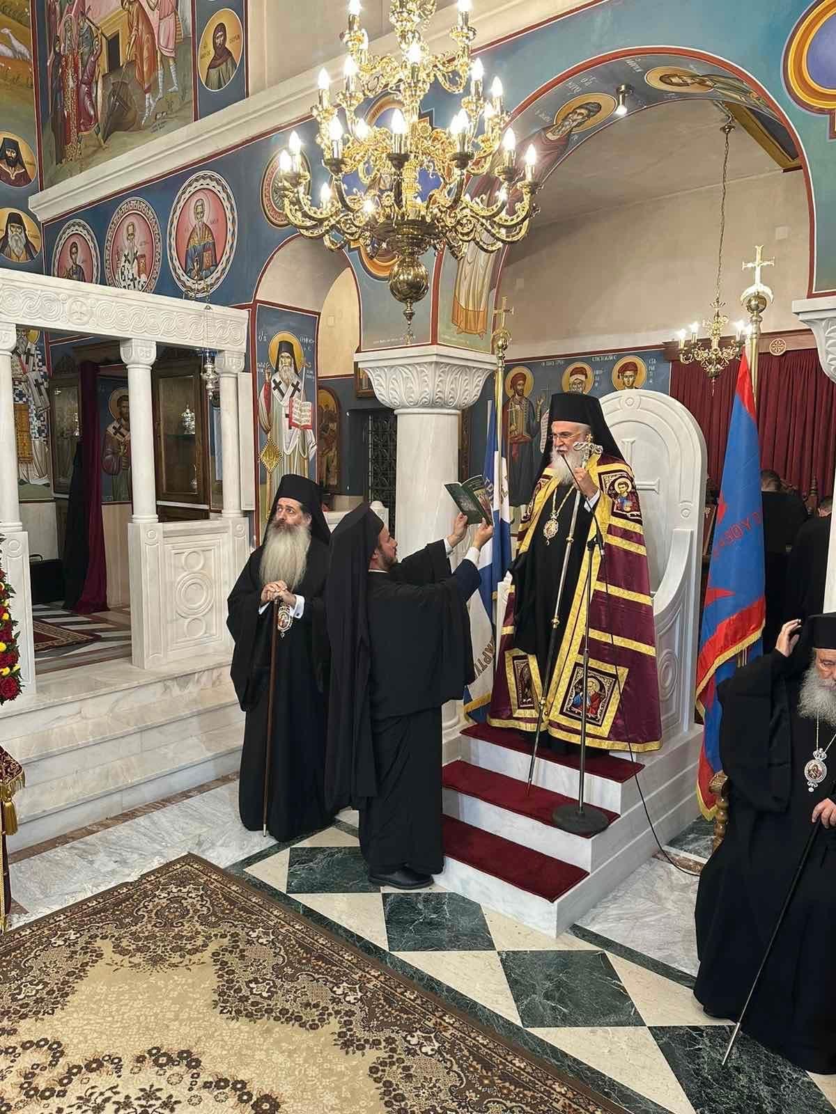 Μάλιστα, χοροστάτησε ο Σεβασμιώτατος Μητροπολίτης Λήμνου και Αγίου Ευστρατίου κ. Ιερόθεος, ο οποίος ως γνωστόν έλκει την καταγωγή του από τις Σπέτσες και συγχοροστάτησαν οι Μητροπολίτες Φθιώτιδος κ.κ Συμεών και Εφραίμ ο οποίος προσφώνησε τους Αρχιερείς και τους ευχαρίστησε για τον κόπο του ταξιδιού.