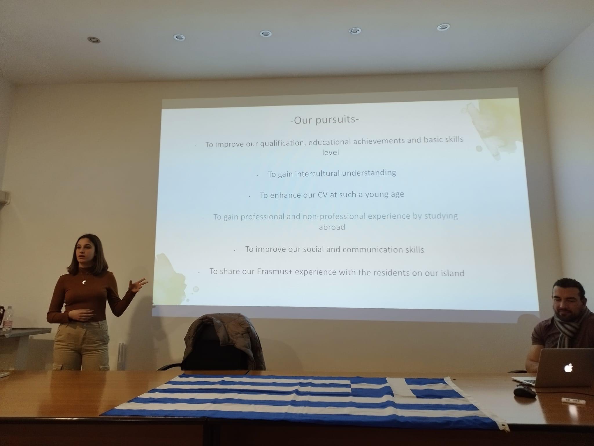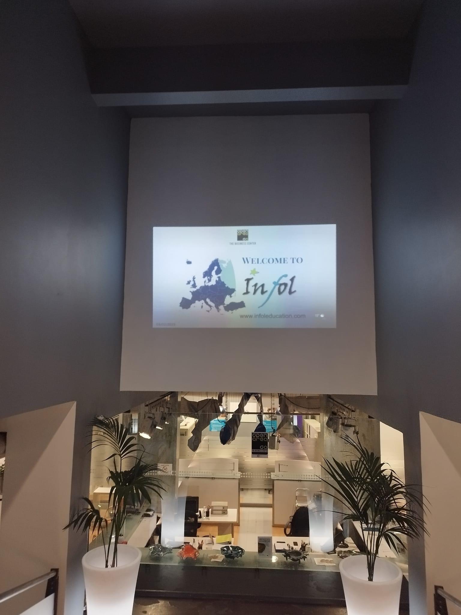 Το απόγευμα έγινε η επίσημη υποδοχή στον φορέα INFOL όπου έγινε η επίσημη παρουσίαση του προγράμματος από πλευράς διοργανωτών αλλά και του σχολείου, της Λήμνου και των ίδιων των συμμετεχόντων μαθητών.
