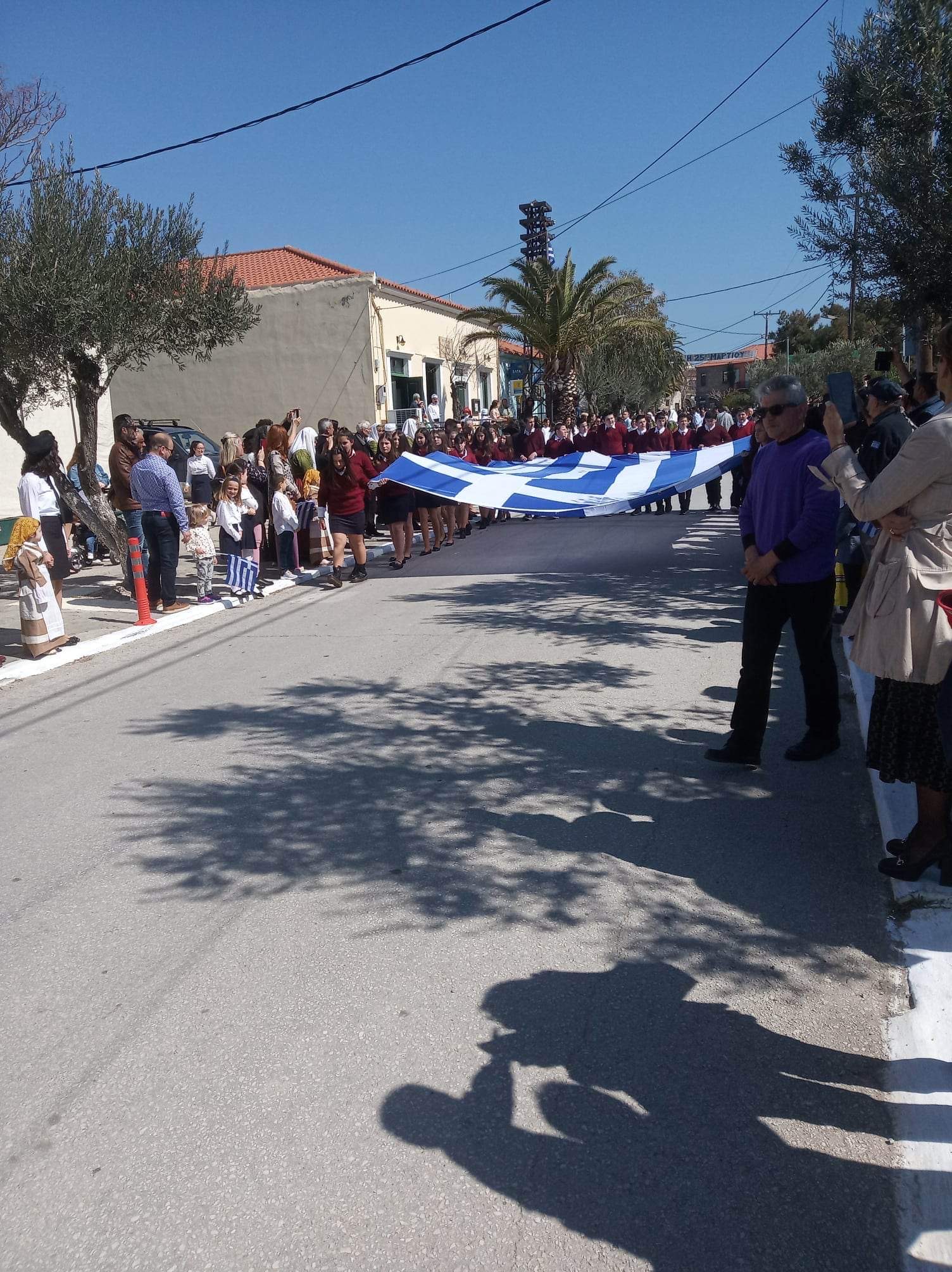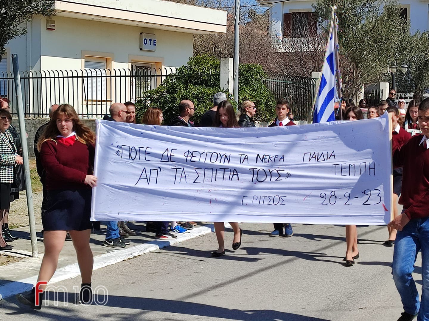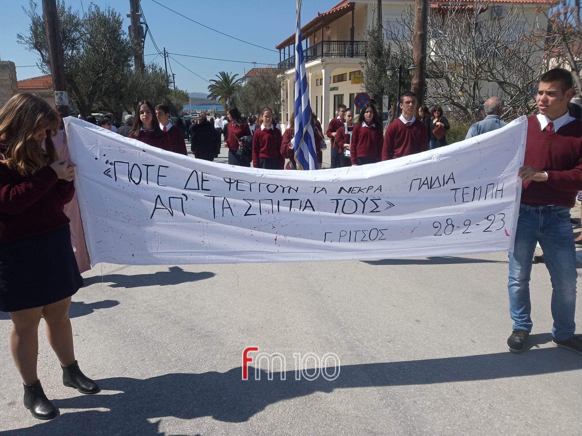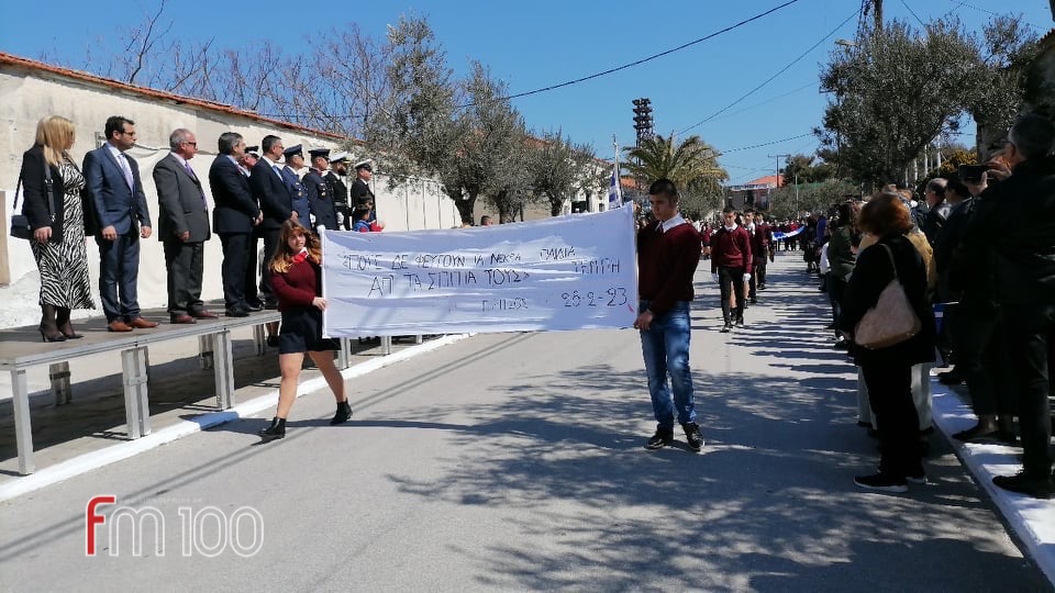 Ο κ. Χλέτσος, συγκλονισμένος ως πατέρας φοιτητή που ταξίδευε συχνά στη συγκεκριμένη γραμμή, παραχώρησε στους μαθητές μια ελληνική σημαία μεγάλων διαστάσεων την οποία εκείνοι μεταφέροντας με σεβασμό έκλεισαν τη σημερινή παρέλαση στέλνοντας το δικό τους μήνυμα.