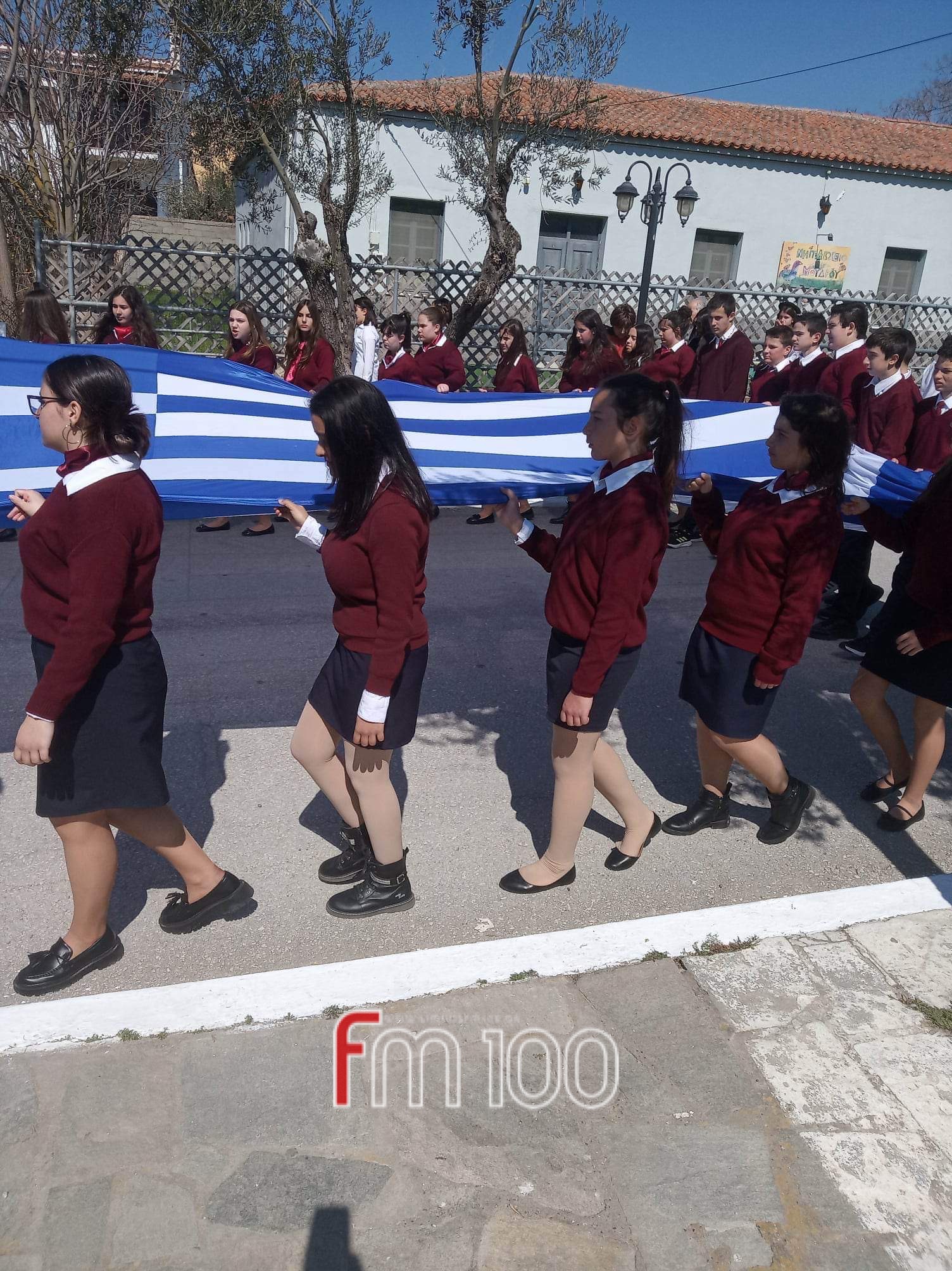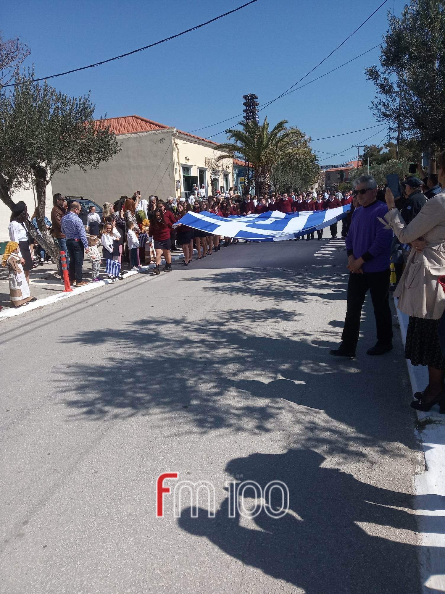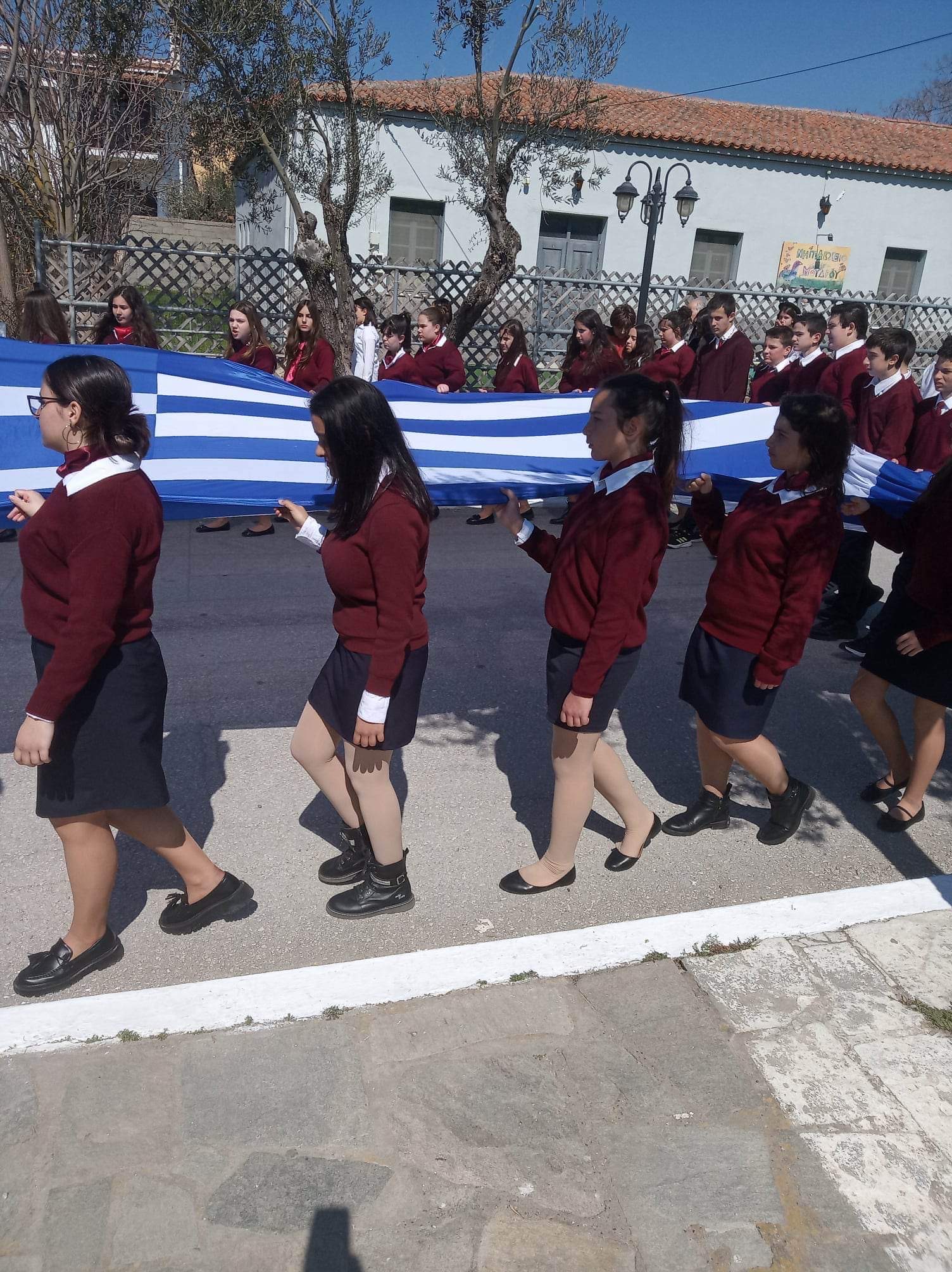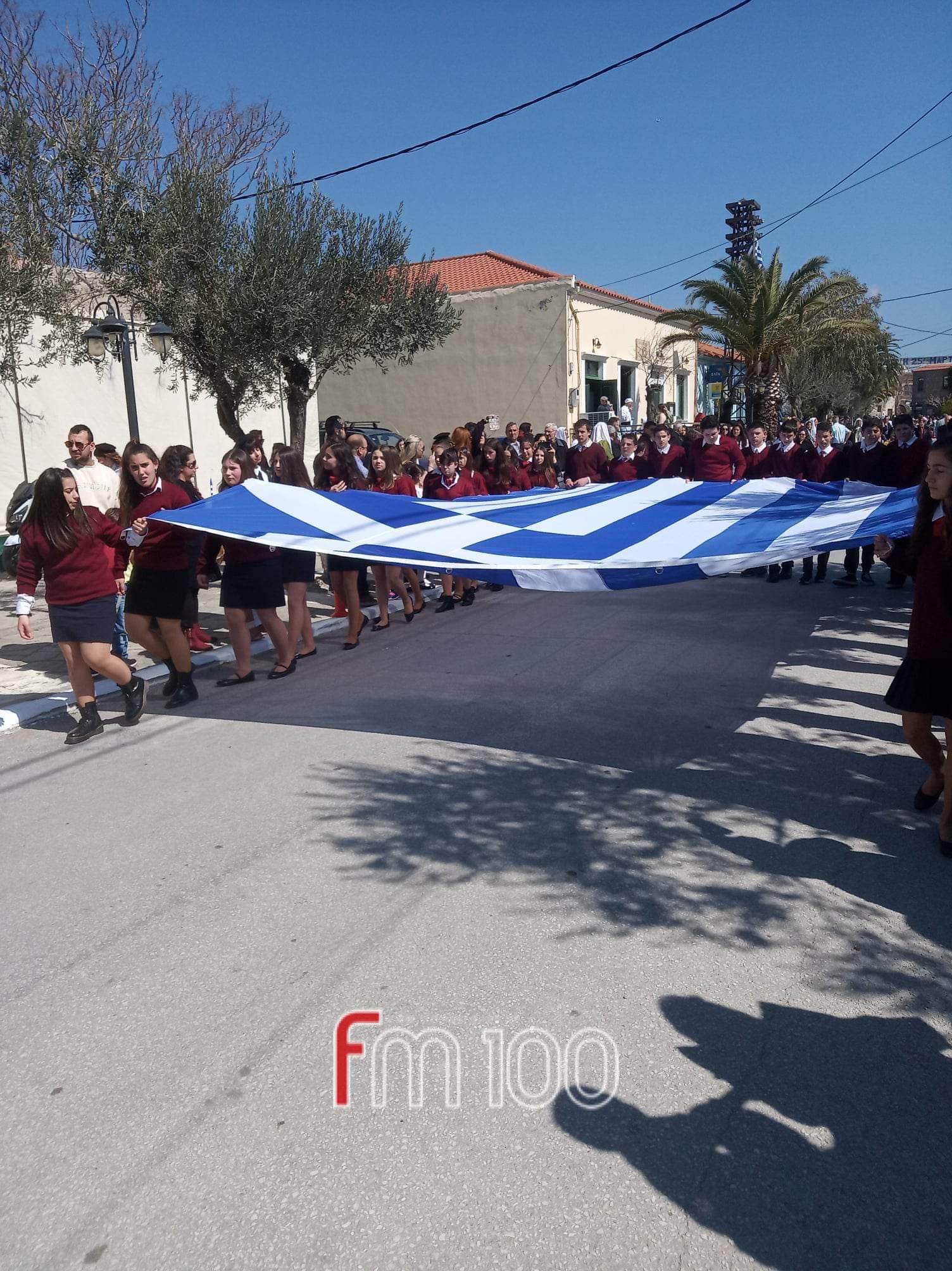 Ο κ. Χλέτσος, συγκλονισμένος ως πατέρας φοιτητή που ταξίδευε συχνά στη συγκεκριμένη γραμμή, παραχώρησε στους μαθητές μια ελληνική σημαία μεγάλων διαστάσεων την οποία εκείνοι μεταφέροντας με σεβασμό έκλεισαν τη σημερινή παρέλαση στέλνοντας το δικό τους μήνυμα.