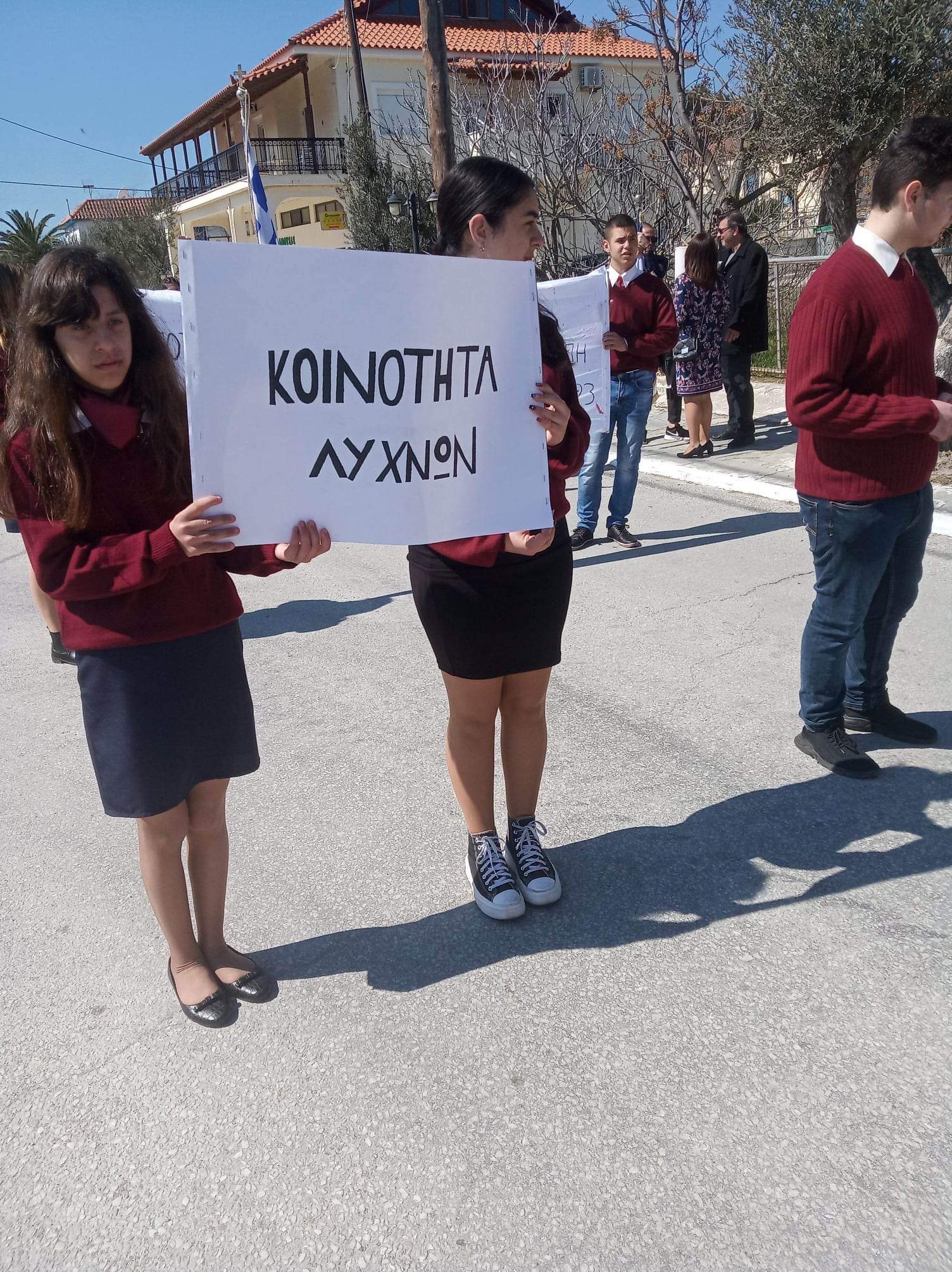 Παράλληλα, όμως, «και καθώς όλοι συνεχίζουμε να είμαστε συγκλονισμένοι από το πρόσφατο τραγικό συμβάν των Τεμπών, ανταποκρίθηκαμε στο κάλεσμα του κ. Χλέτσου Βασίλειου, πατέρα μαθήτριας του σχολείου μας και Πρόεδρο της Κοινότητας Λύχνων να αποδώσουμε με ένα ιδιαίτερο τρόπο τιμή στη μνήμη των 57 νέων, κατά μεγάλη πλειοψηφία, θυμάτων που έχασαν απρόσμενα και τραγικά τη ζωή τους», γράφει η Διευθύντρια του Γυμνασίου, Μαρία Παπαπαναγιώτου.