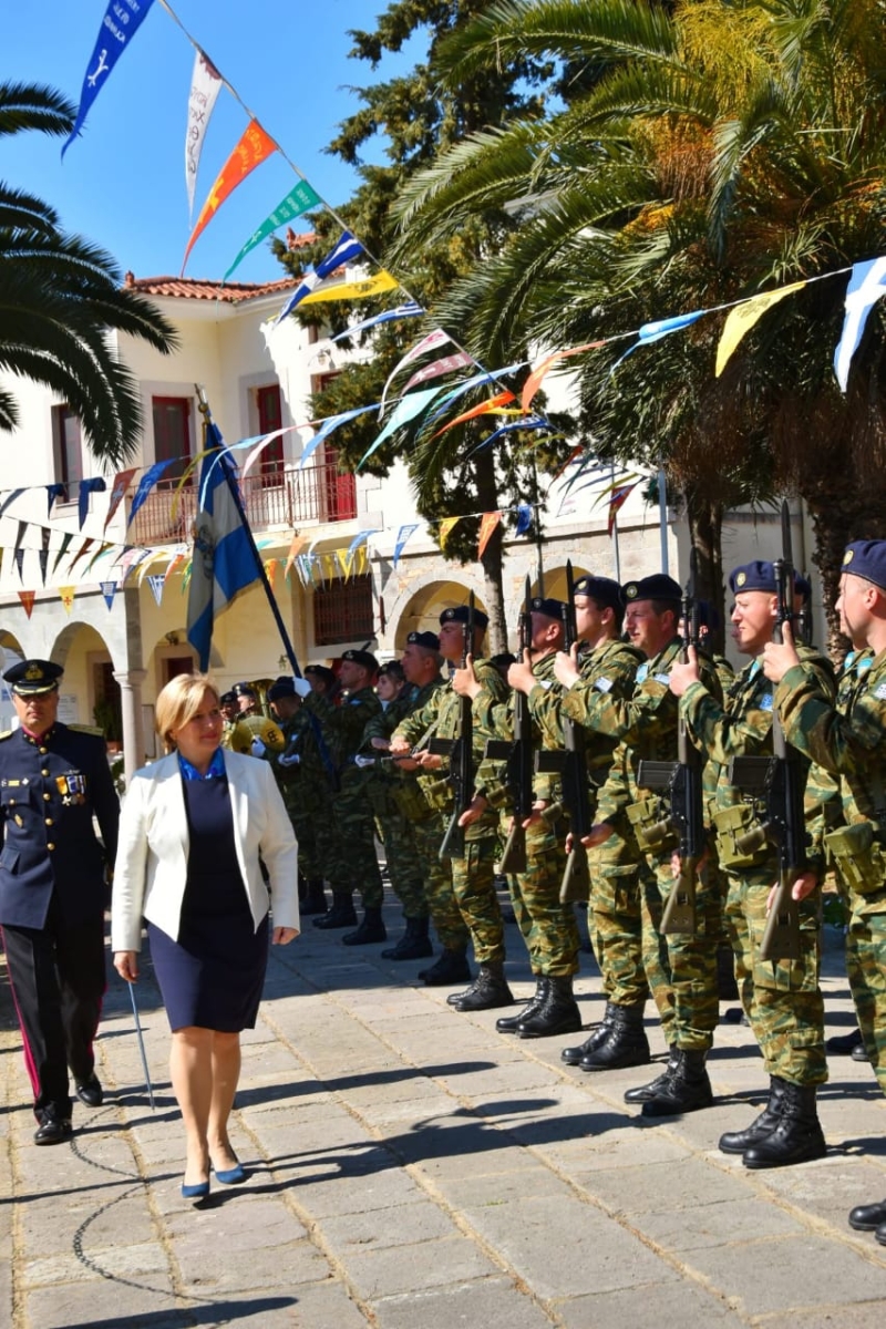 Στη συνέχεια, η Αναπληρώτρια Υπουργός κατέθεσε στεφάνι στο χώρο του Ηρώου Πεσόντων και στη συνέχεια παρακολούθησε την παρέλαση στο νησί.