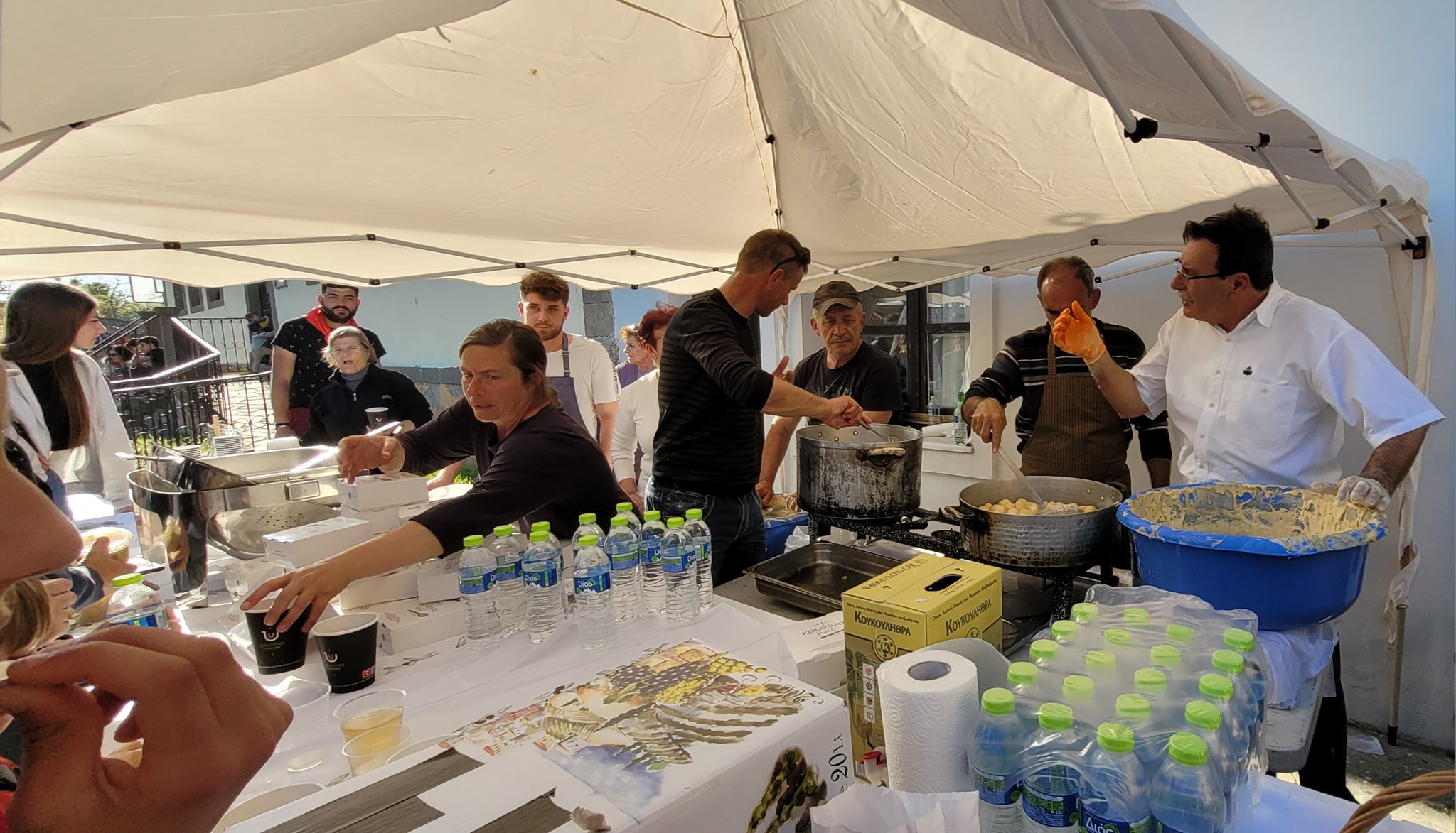 Δεν έλειψαν τα σουβλάκια, η παραδοσιακή κουρκούτα για όλους, και οι λουκουμάδες.