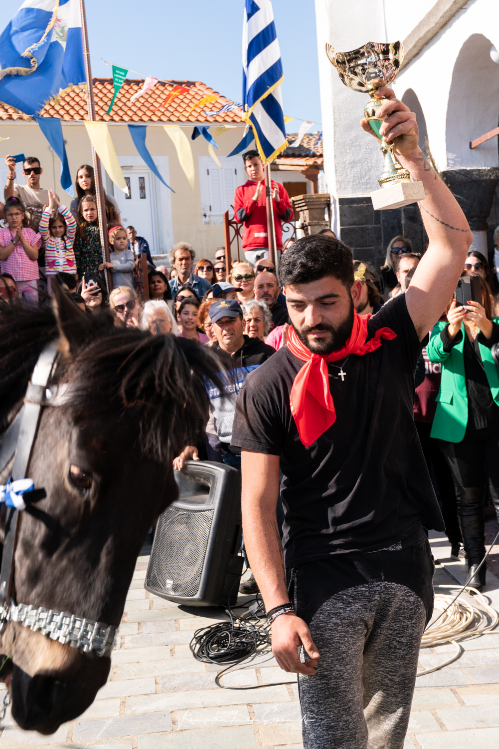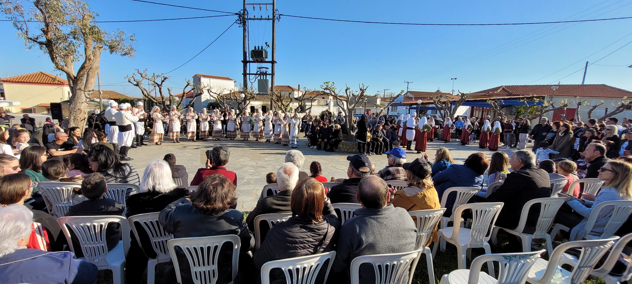 Μετά το τέλος του τρεξίματος των αλόγων και την ευλογία αναβατών και αλόγων από τον ιερέα στον Άγιο Γεώργιο, το πρόγραμμα της ημέρας συνεχίστηκε στην αυλή του σχολείου του χωριού με παραδοσιακούς χορούς από τα συγκροτήματα: