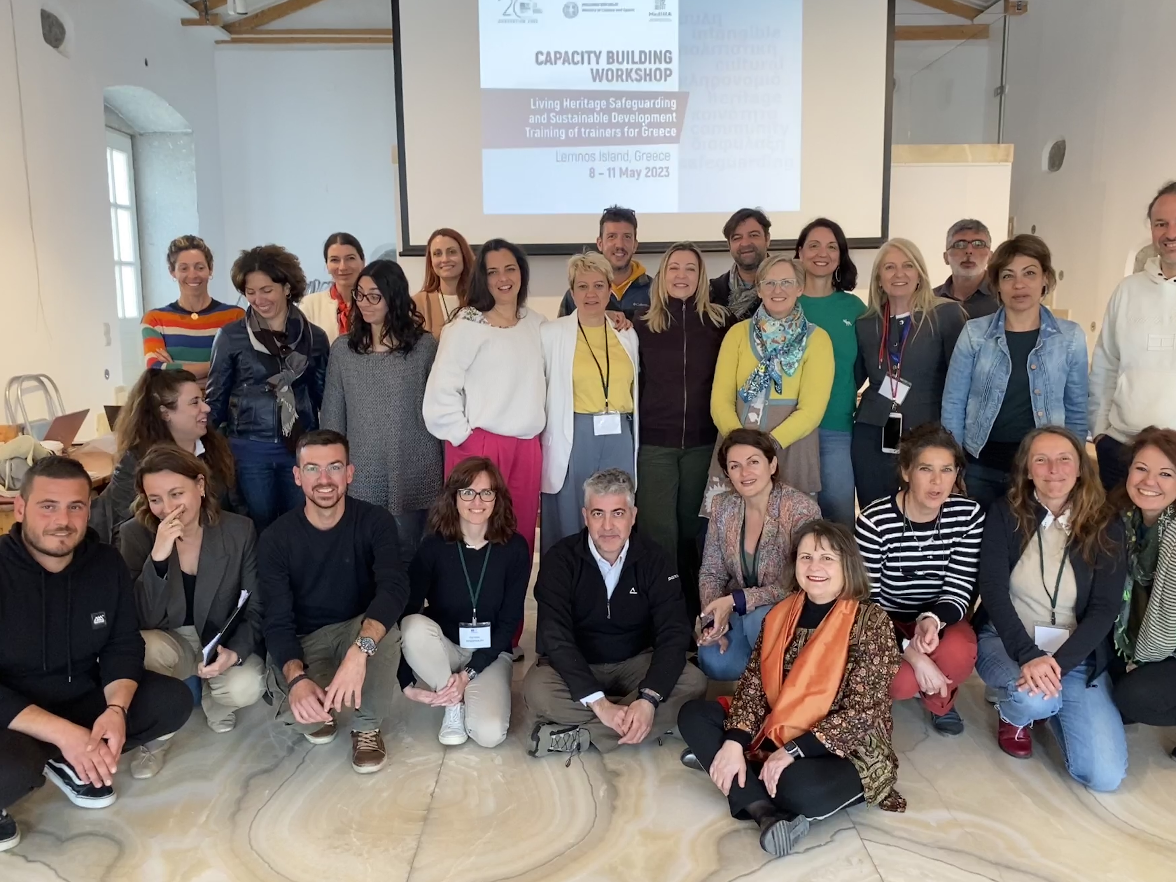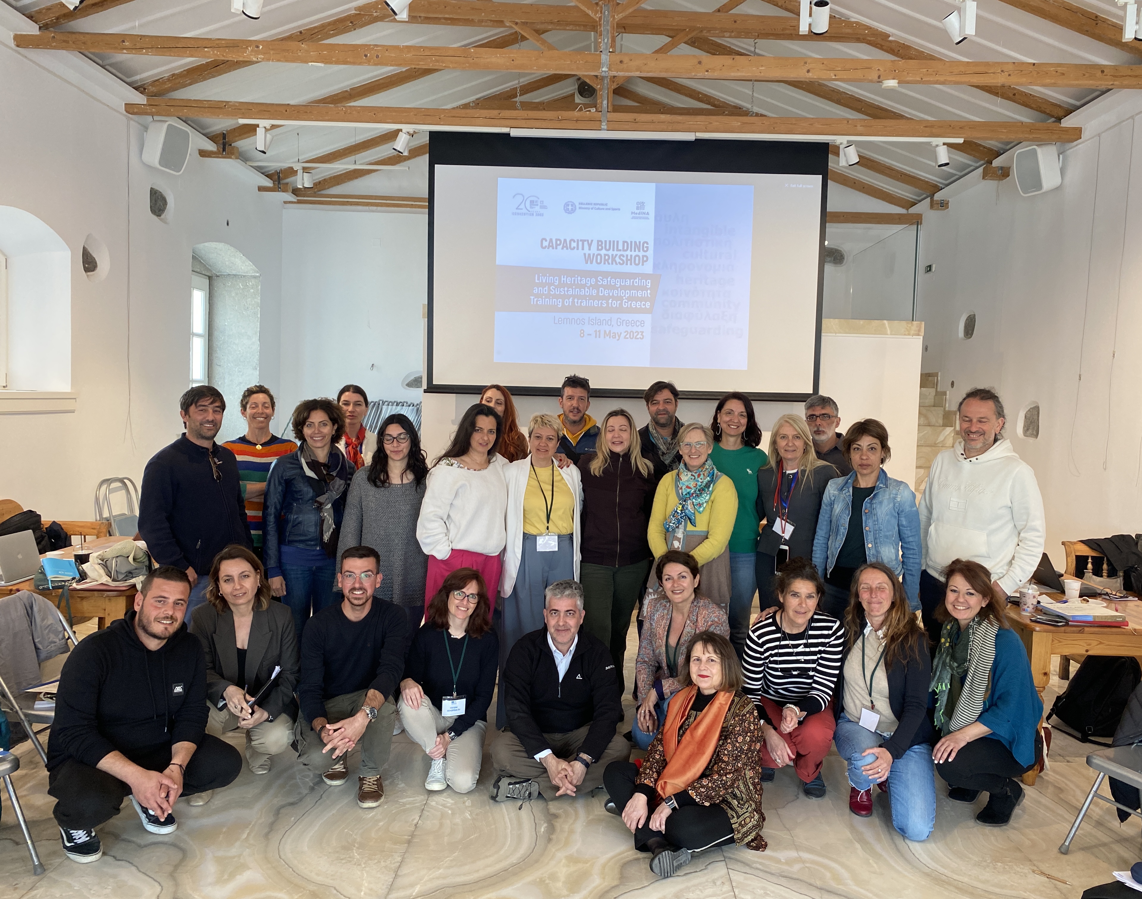 Οι εκπαιδεύτριες (facilitators) της UNESCO Harriet Deacon & Βenedetta Ubertazzi και οι δεκαεπτά έμπειροι/ες εκπαιδευόμενοι/ες, (εκπρόσωποι πολιτιστικών φορέων, ακαδημαϊκοί, πολιτιστικοί διαχειριστές, αρχιτέκτονες, εκπαιδευτικοί) μοιράστηκαν ιδέες και προσεγγίσεις που συνδυάζουν τη διαφύλαξη της άυλης πολιτιστικής κληρονομιάς με τη βιώσιμη ανάπτυξη, ενώ συζήτησαν τις προκλήσεις που προκύπτουν από αυτή τη σύνδεση, καθώς και πιθανούς τρόπους αντιμετώπισής τους. Κεντρική θέση στις συζητήσεις είχε επίσης η ανάπτυξη δράσεων στο πλαίσιο του πολιτιστικού τουρισμού και η προώθηση προϊόντων προερχόμενων από διάφορες εκφάνσεις της άυλης πολιτιστικής κληρονομιάς πάντα με γνώμονα τη διαφύλαξή της. Αρκετός χρόνος συζήτησης αφιερώθηκε ακόμη στη διαδικασία απόκτησης και στη σημασία των γεωγραφικών ενδείξεων προέλευσης των προϊόντων, καθώς και στο θέμα της προστασίας των πνευματικών δικαιωμάτων σχετικά με την άυλη πολιτιστική κληρονομιά. Τέλος, οι συμμετέχοντες/ουσες, στο πλαίσιο άσκησης, συζήτησαν και κατέγραψαν σειρά προτάσεων προς το MedINA σχετικά με την αποτελεσματικότερη αξιοποίηση της άυλης πολιτιστικής κληρονομιάς στη βιώσιμη ανάπτυξη της Λήμνου.