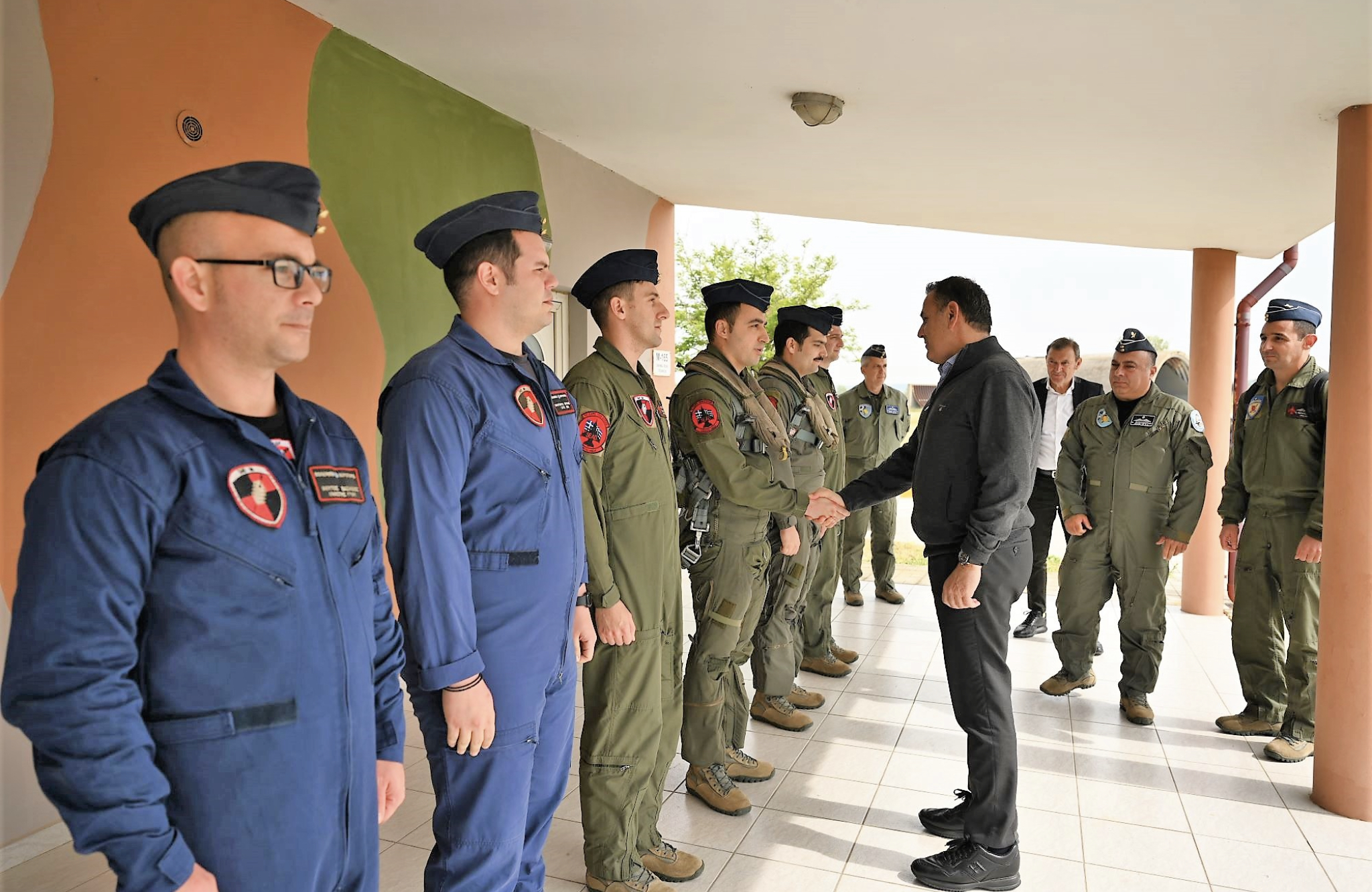 Ο Υπουργός μετέβη στην 130 Σμηναρχία Μάχης (130 ΣΜ) όπου συναντήθηκε με τα στελέχη που υπηρετούν στις εγκαταστάσεις των Κλιμακίων Επιφυλακής (Readiness) μαχητικών αεροσκαφών και ελικοπτέρων της Πολεμικής Αεροπορίας, και ενημερώθηκε για επιχειρησιακά θέματα.