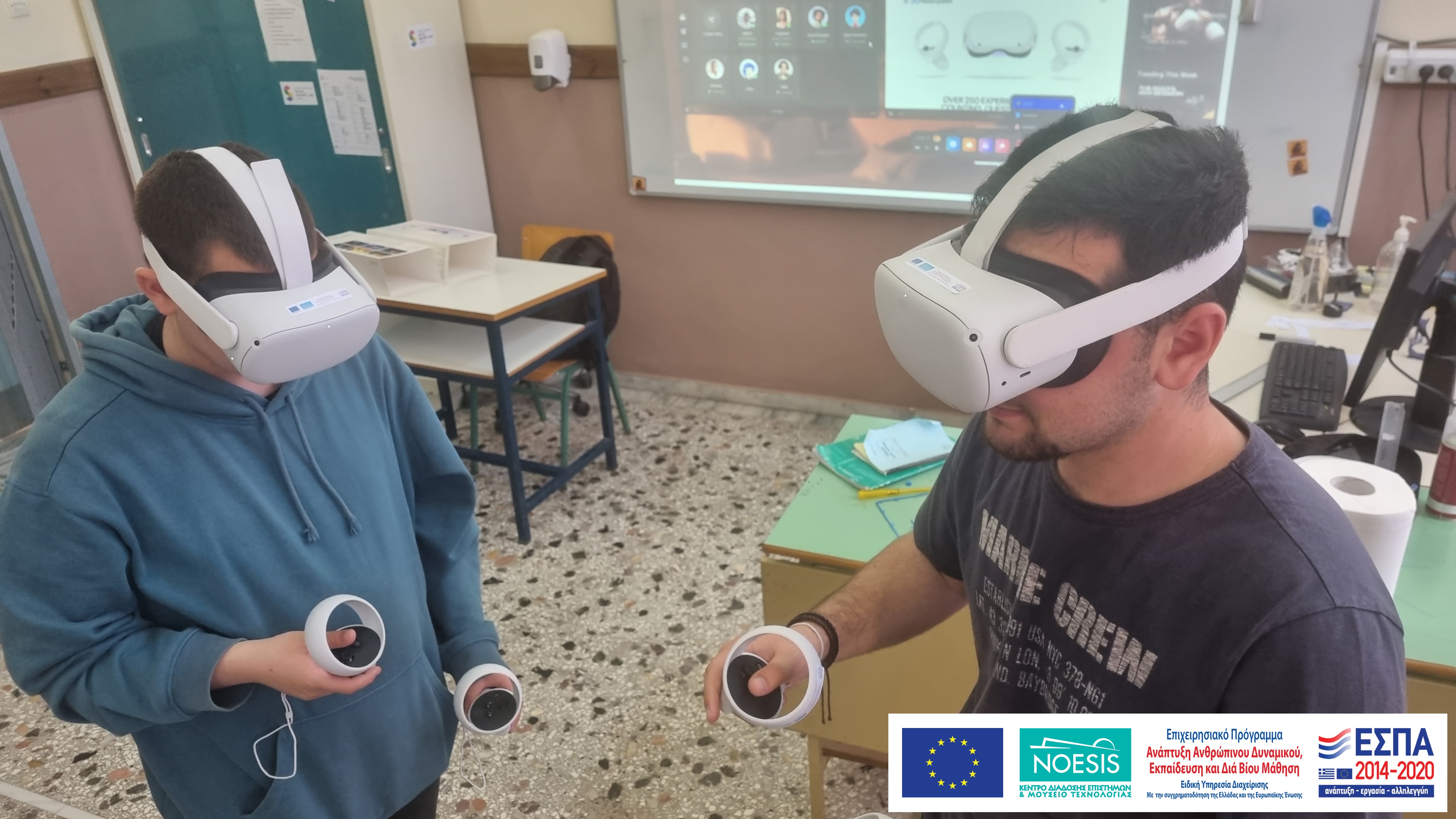 Φέτος το πρόγραμμα μας «ΜΑΘΑΙΝΩ, ΑΓΓΙΖΩ, ΚΑΤΑΛΑΒΑΙΝΩ» σχετίζεται με την εικονική πραγματικότητα και στο πλαίσιο της χρηματοδότησής του προμηθευτήκαμε τα γυαλιά εικονικής πραγματικότητας Oculus Quest 2. Οι περισσότεροι μαθητές του σχολείου μας χρησιμοποίησαν το λογισμικό First Steps και έτσι εξοικειώθηκαν με τη χρήση των γυαλιών εικονικής πραγματικότητας μέσα από παιχνίδια. Έπειτα χρησιμοποίησαν τα γυαλιά αυτά στη μαθησιακή διαδικασία χρησιμοποιώντας εξειδικευμένο λογισμικό για τον τομέα τους.