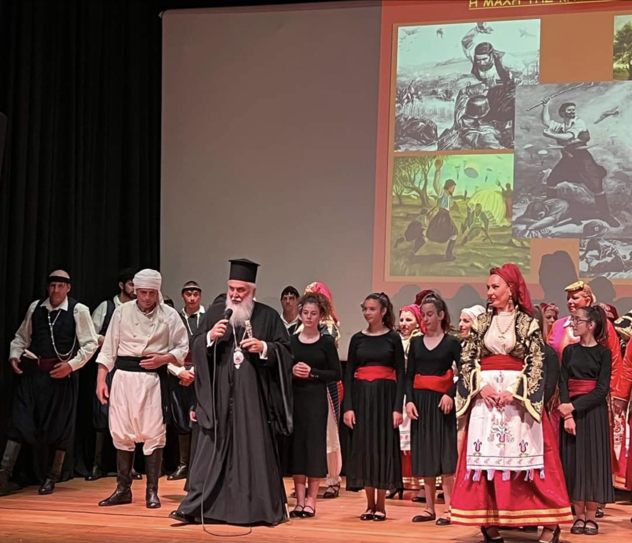 Στο τέλος της εκδήλωσης από σκηνής ο Σεβασμιώτατος Μητροπολίτης μας κκ ΙΕΡΟΘΕΟΣ έκλεισε την βραδιά λέγοντας μεταξύ των άλλων: «Απόψε εισπράξαμε πλούτο και περηφάνια πάνω στη σκηνή. Σας συγχαίρω μέσα απ την καρδιά μου και ιδιαιτέρως τις παιδικές και εφηβικές παρουσίες που χόρεψαν με ενθουσιασμό και επιφωνήματα από τον κόσμο, κάτω από την γαλανόλευκη.Απόψε αισθάνθηκα ότι ζω σε άλλη εποχή, σε καλύτερα χρόνια.Η διατήρηση της ιστορικής μνήμης μεταγγίζει την ελπίδα ότι θα συνεχίσουμε να υπάρχουμε σαν λαός και δεν είναι υποχρέωση μόνο ενός συλλόγου ή της πολιτείας,αλλά αφορά στον καθένα μας ξεχωριστά και όλους μαζί, για να υπάρχει για εμάς αύριο.»