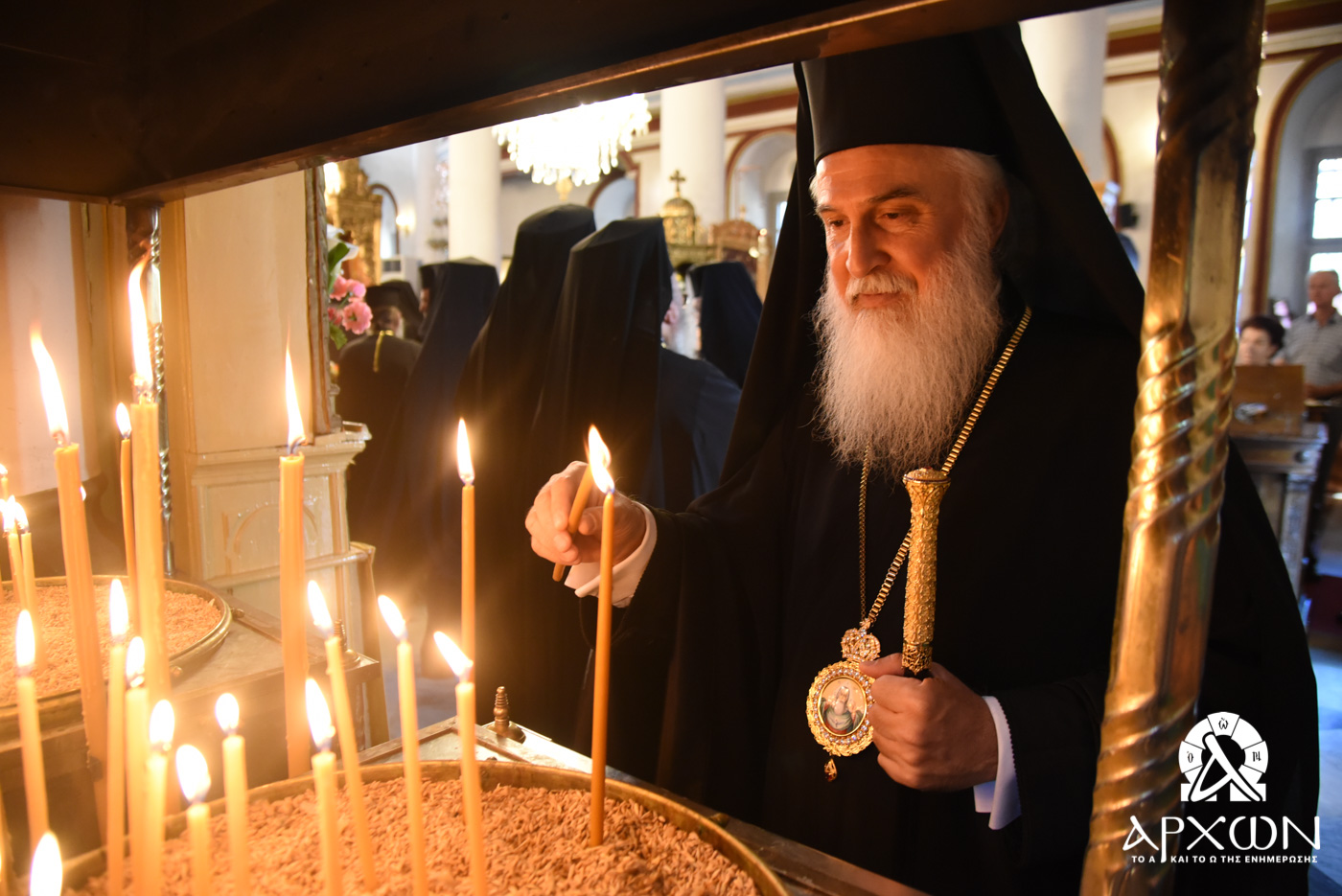 Στον κατάμεστο Ναό, τελέστηκε Πανηγυρικός Όρθρος και πολυαρχιερατική Θεία Λειτουργία χοροστατούντος και προεξάρχοντος του Σεβ. Μητροπολίτου Κηφισίας, Αμαρουσίου, Ωρωπού και Μαραθώνος κ. Κυρίλλου, και συλλειτουργούντων των Σεβ. Μητροπολιτών Τρίκκης, Γαρδικίου και Πύλης κ. Χρυσοστόμου, Λαγκαδά, Λητής και Ρεντίνης κ. Πλάτωνος και του Ποιμενάρχου Λήμνου και Αγίου Ευστρατίου κ. Ιεροθέου.