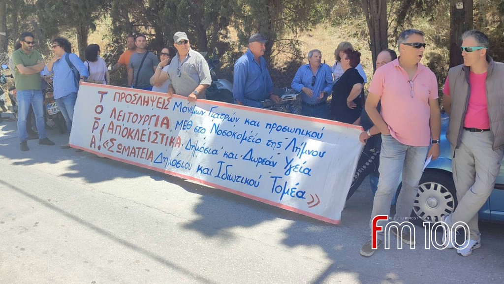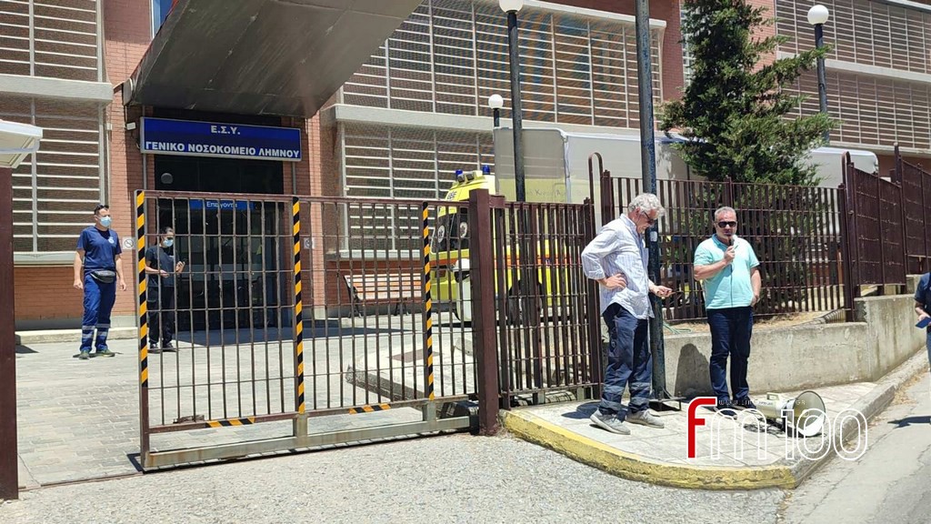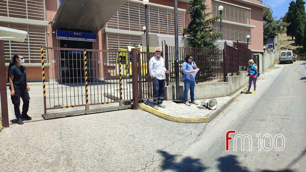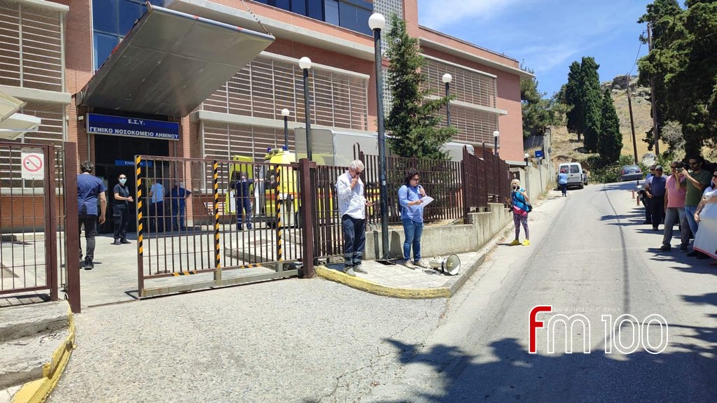 Κάτοικοι της Λήμνου κάθε ηλικίας, μέλη των σωματείων, εργαζόμενοι αλλά και συνταξιούχοι, συγκεντρώθηκαν έξω από την είσοδο του Τμήματος Επειγόντων με το πανό τους, διατρανώνοντας το πάνδημο αίτημα για στελέχωση του Νοσοκομείου με όλο το απαραίτητο μόνιμο ιατρικό, υγειονομικό και λοιπό προσωπικό, όλων των ειδικοτήτων, αλλά και προμήθεια όλου του απαραίτητου εξοπλισμού, ώστε να είναι δυνατή η παροχή πραγματικής φροντίδας Υγείας για τους κατοίκους του ακριτικού μας νησιού.