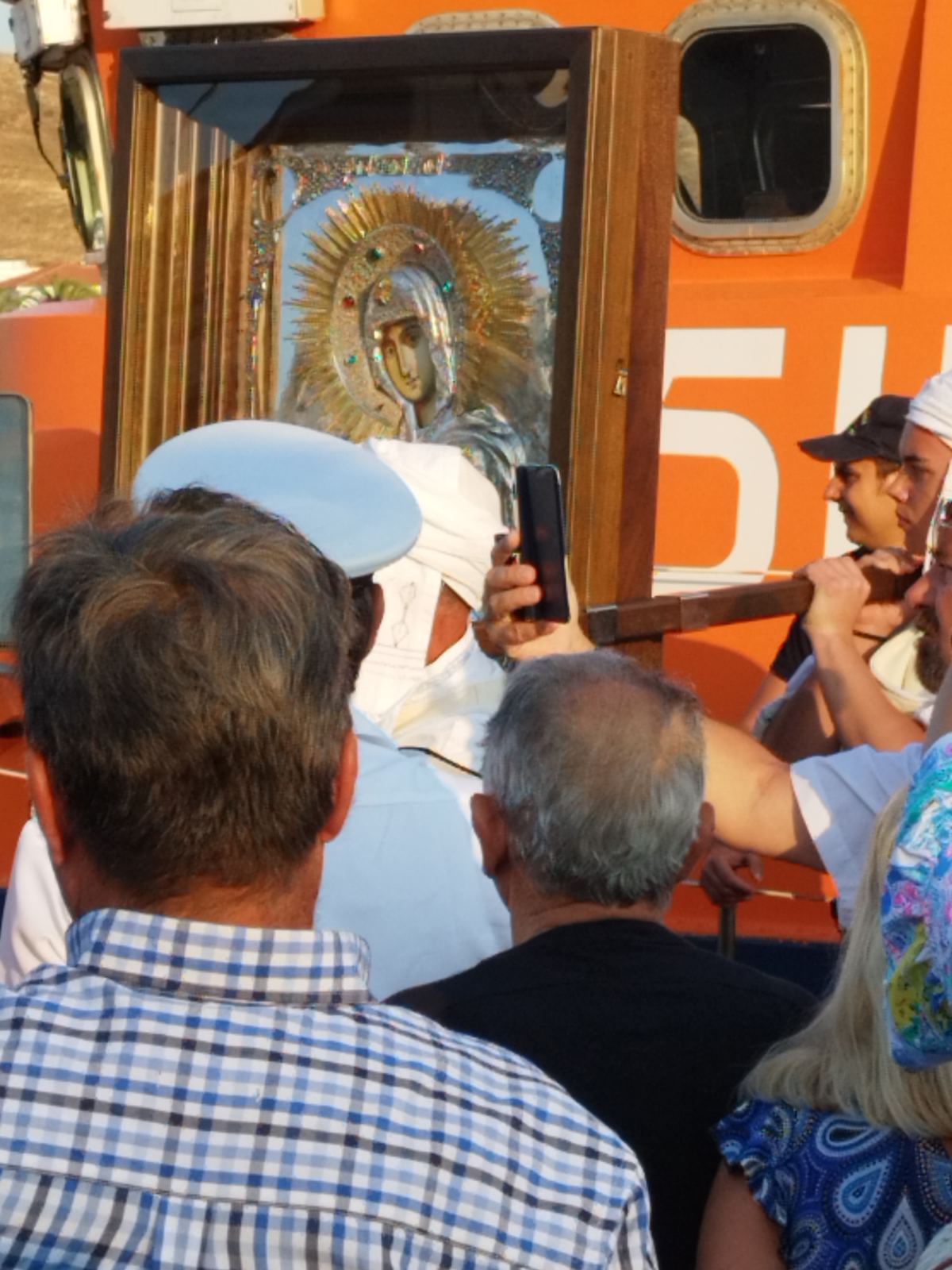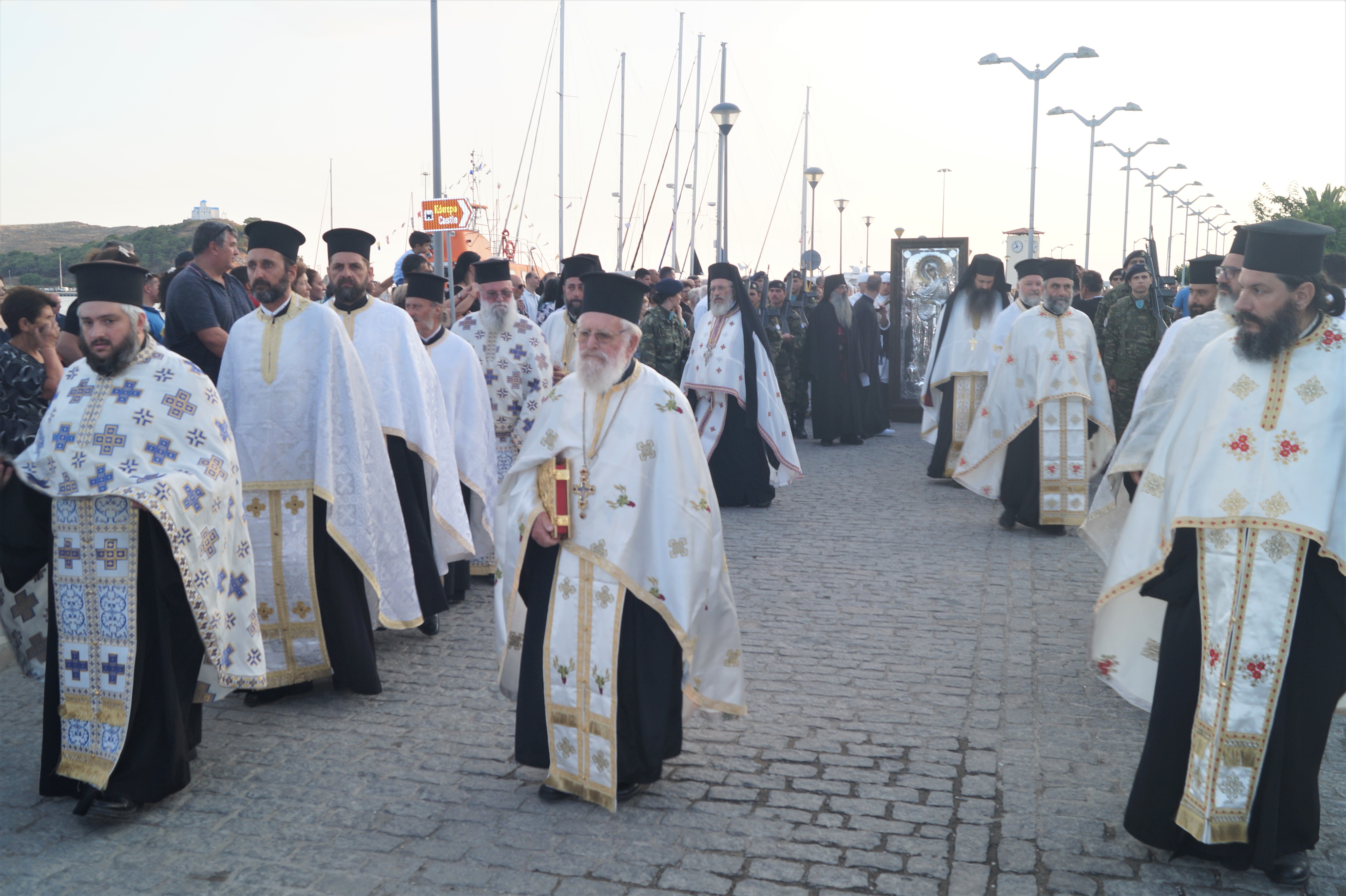 Πιο συγκεκριμένα, στις 19.30 μπροστά από το Δημαρχείο της Λήμνου πραγματοποιήθηκε η υποδοχή της Ιεράς Εικόνας της Παγαγίας «ΓΕΡΟΝΤΙΣΣΗΣ» από την Ιερά Μονή Παντοκράτορος του Αγίου Όρους, η οποία ταξίδεψε με σκάφος της Λιμενικής Αρχής του νησιού.