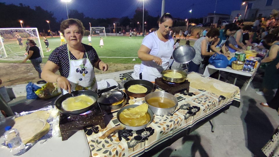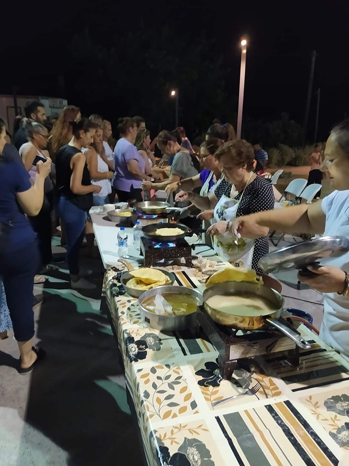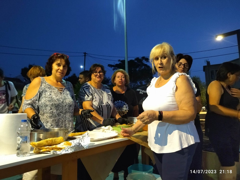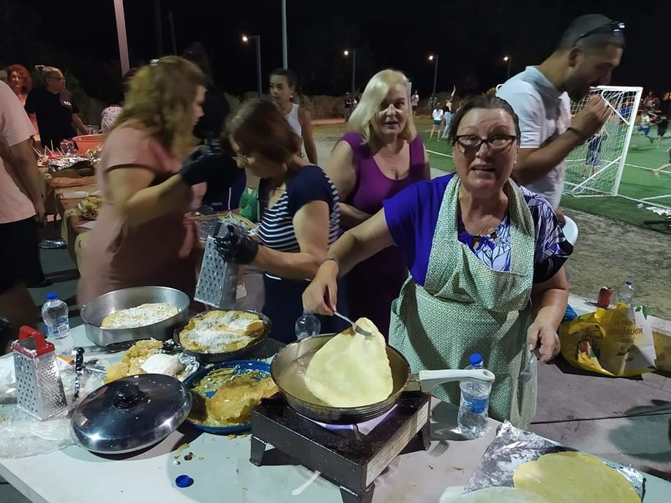Κάπως έτσι είδαν οι γυναίκες του Αγίου Δημητρίου τη χθεσινή ημέρα και από νωρίς το πρωί της Παρασκευής 14 Ιουλίου, επιδόθηκαν στο να ζυμώνουν, να ανοίγουν φύλλο και να τηγανίζουν τις υπέροχες αυτές λιχουδιές, τις οποίες προσέφεραν με δροσερό καρπούζι,