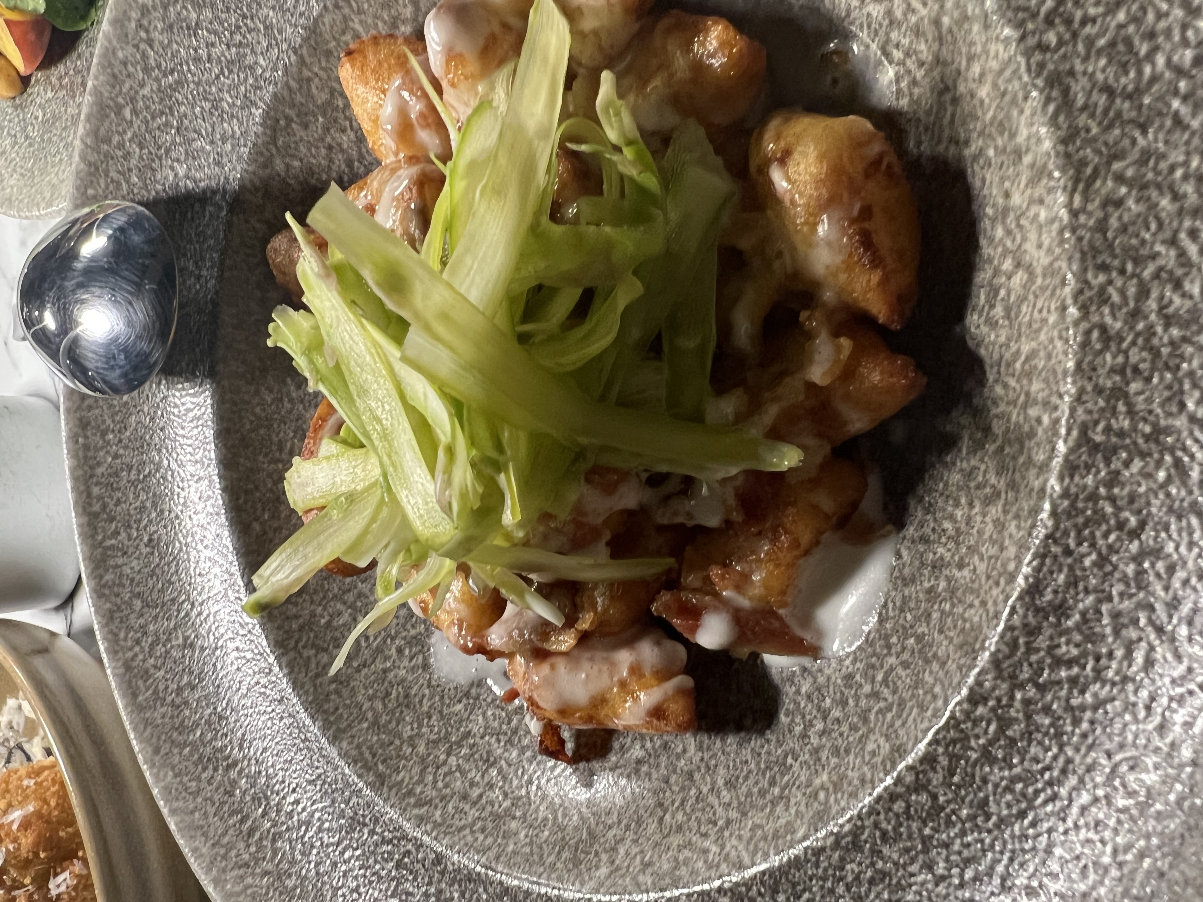 Η ομήγυρις εντυπωσιάστηκε και από το Arancini, παναρισμένη ποικιλία μανιταριών, με τρούφα και παρμεζάνα. Ομολογώ, δεν το δοκίμασα, καθότι η γράφουσα και η τρούφα μανιταριών δεν θα συναντηθούν ποτέ, αλλά αν εσείς αγαπάτε την ιδιαίτερη γεύση της, εμπιστευτείτε την ομήγυρη.