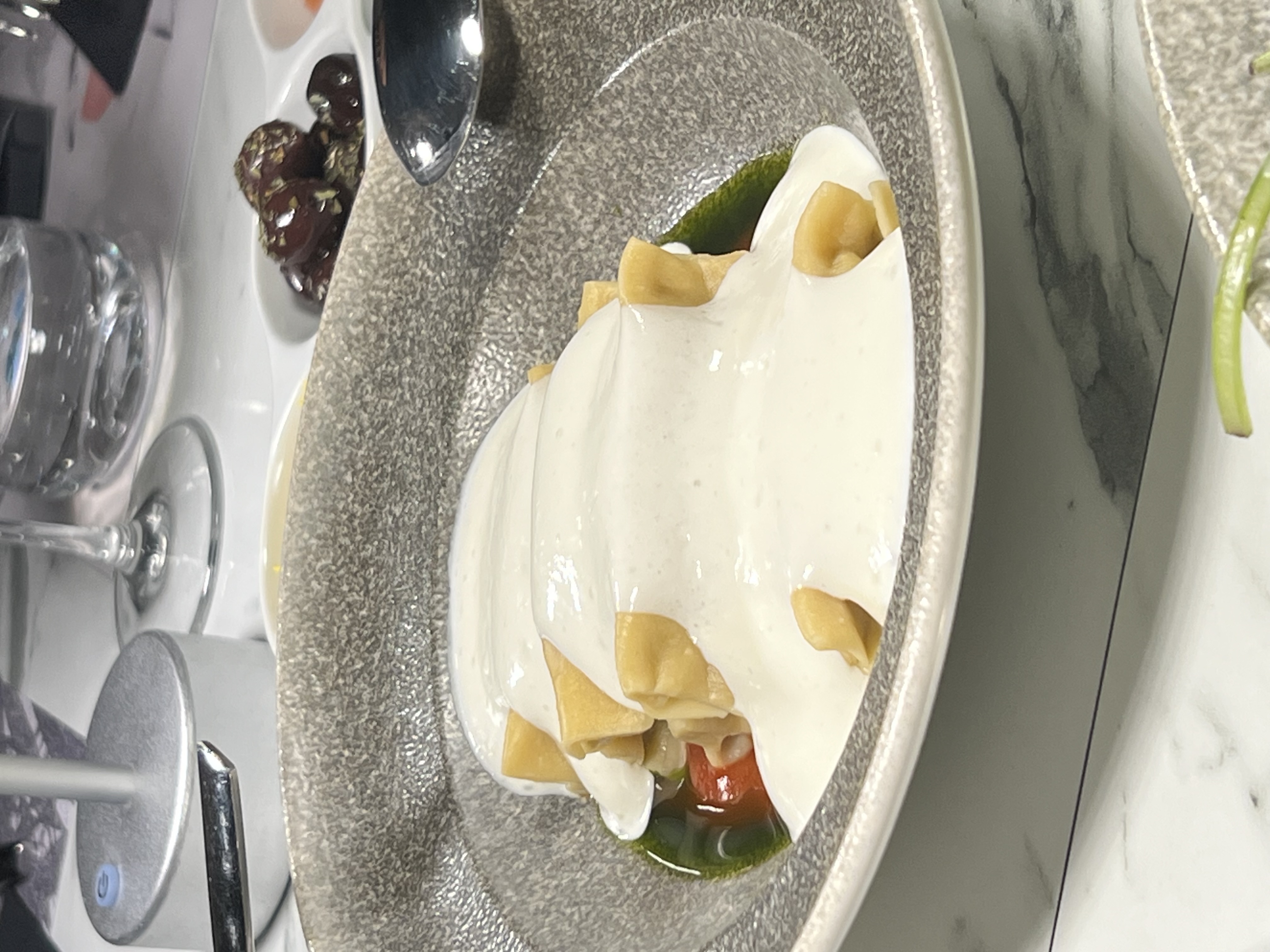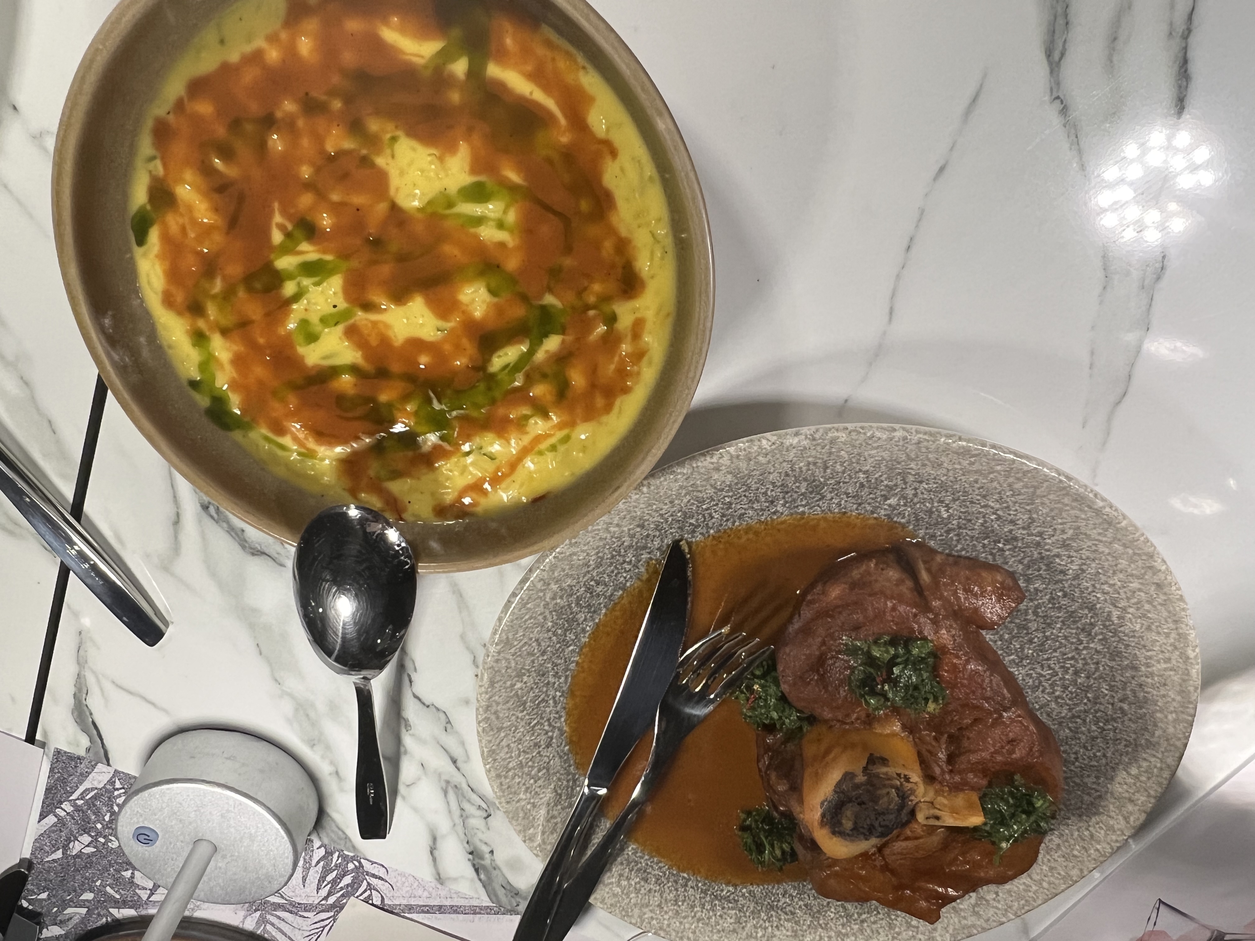 Κ από το τέλος, στην αρχή. Μας υποδέχτηκε ένα δροσερό Γκασπάτσο, μια γευστική σούπα με βάση την ντομάτα, που έρχεται από την Ισπανία και τρώγεται κρύα, όταν κάνει πολλή ζέστη.