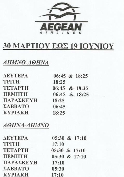 Αλλαγές όμως, υπάρχουν και στην αεροπορική σύνδεση της Λήμνου, αφού ο Φεβρουάριος φέρνει στο νησί την Aegean Airlines.