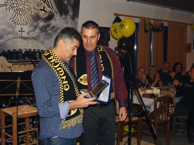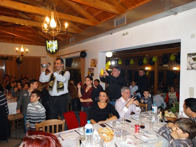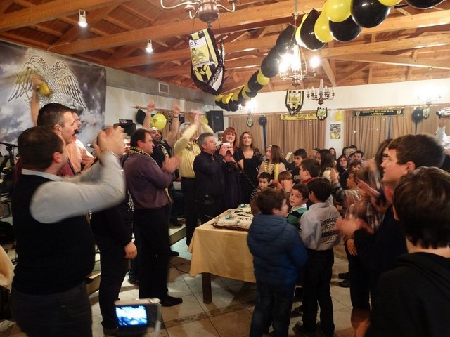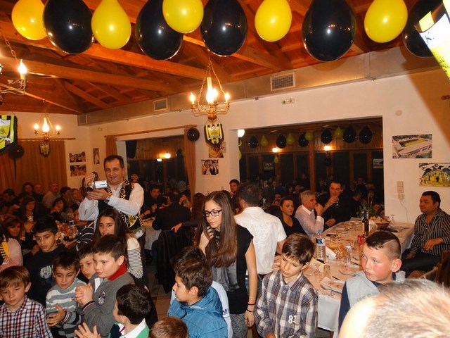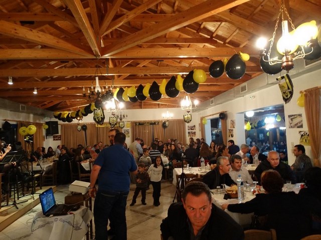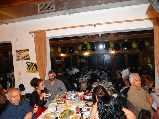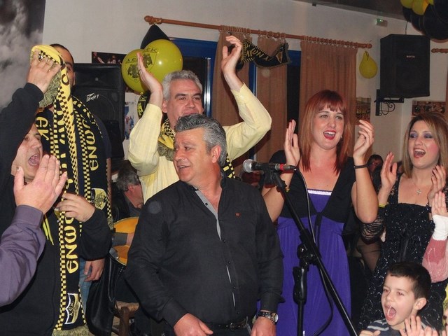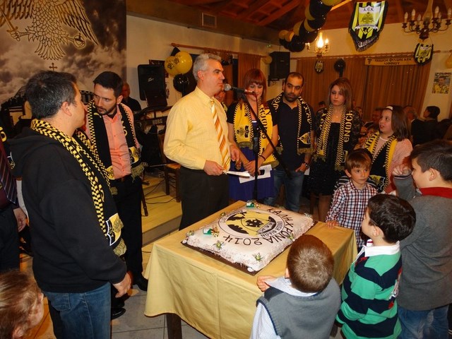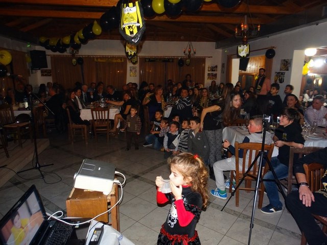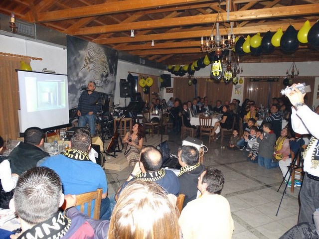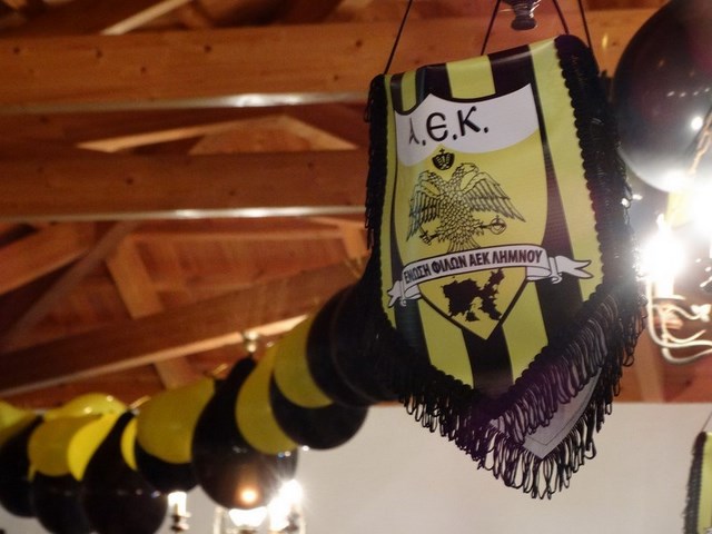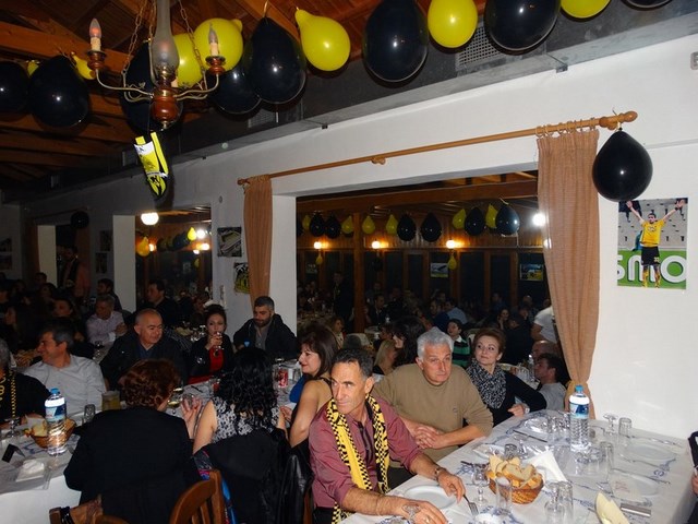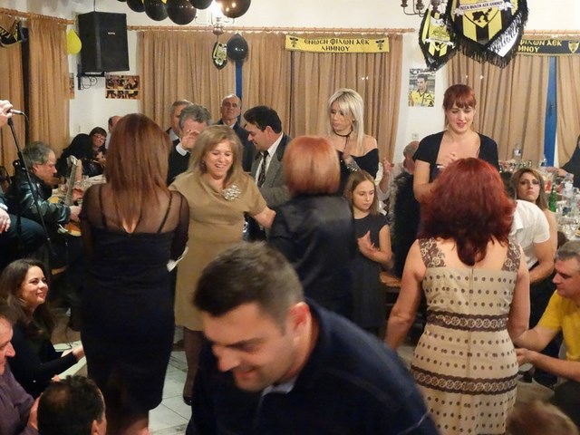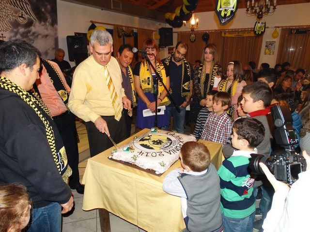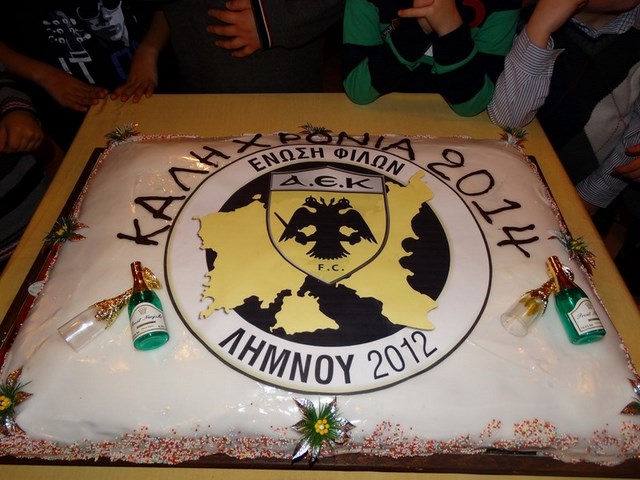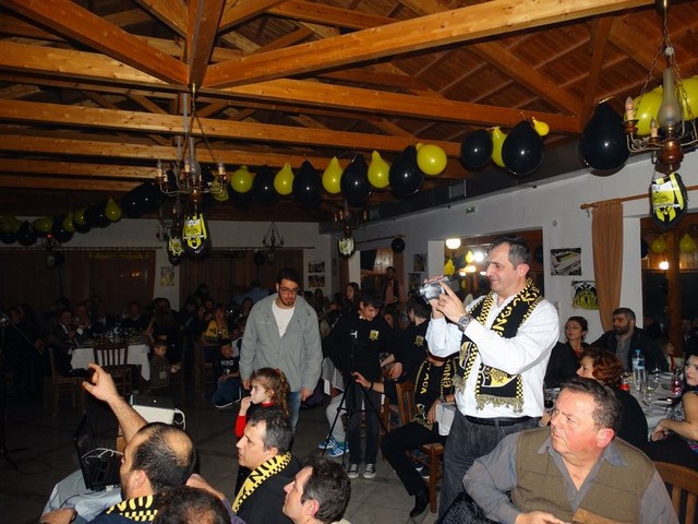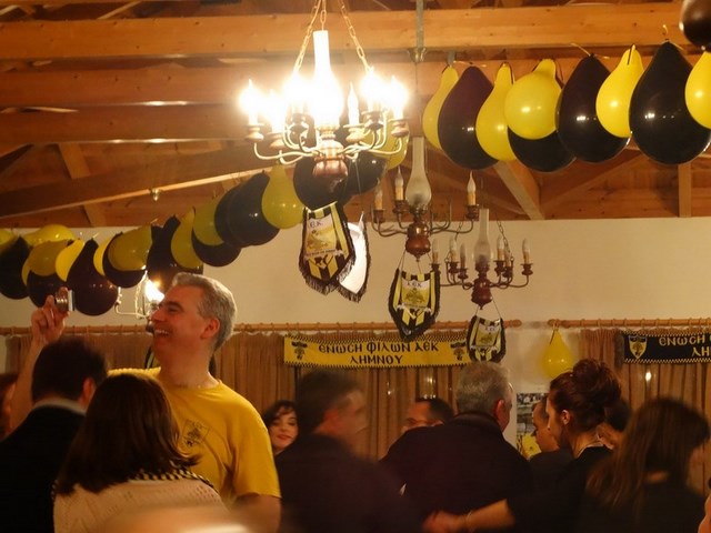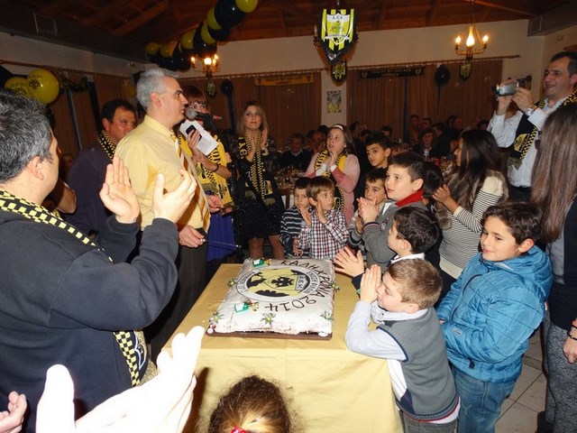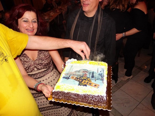Υ/Γ: ´Αλλη μια ευχάριστη στιγμή της βραδιάς, ήταν όταν ο πρόεδρος της Ένωσης Φίλων ΑΕΚ Λήμνου, Απόστολος Παπάμαλης, έσβησε τα κεράκια της γενέθλιας, κιτρινόμαυρης - εννοείται - τούρτας του. Η γλυκύτατη σύζυγος του Ελένη, του ετοίμασε την έκπληξη και κείνος το καταδιασκέδασε.