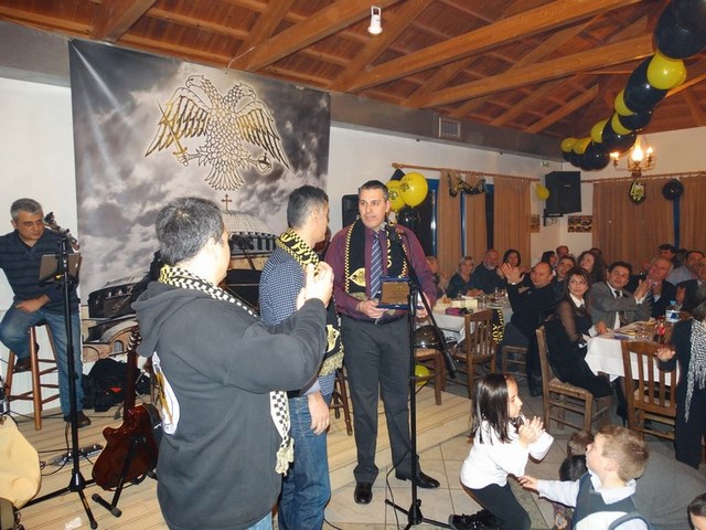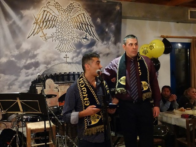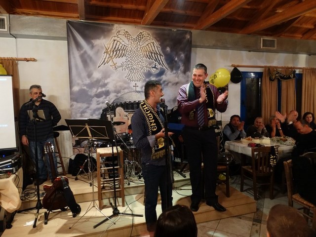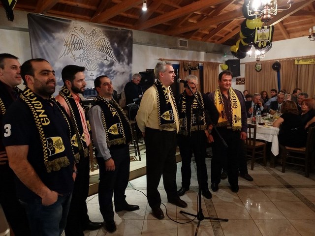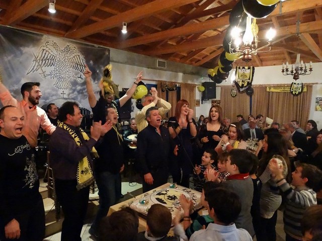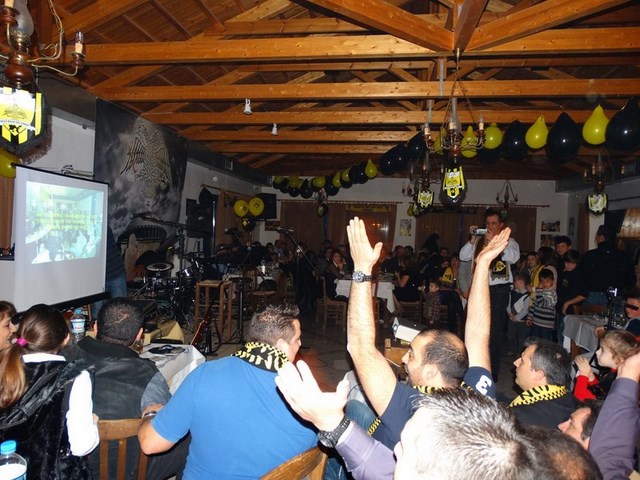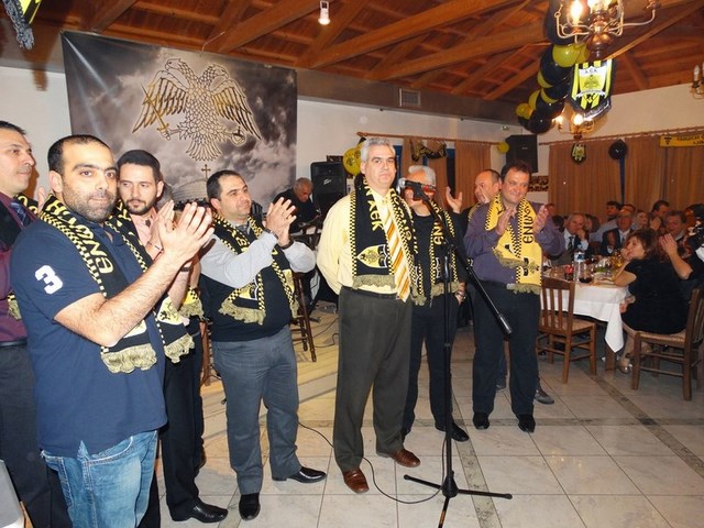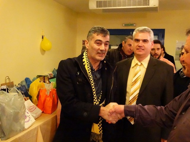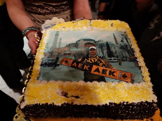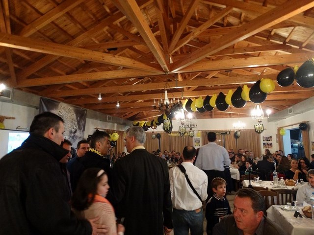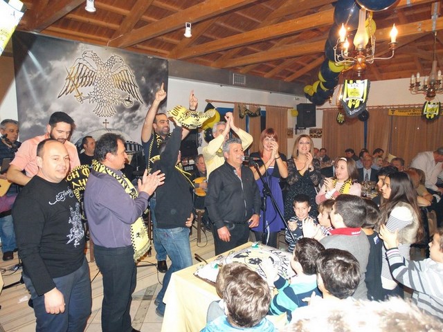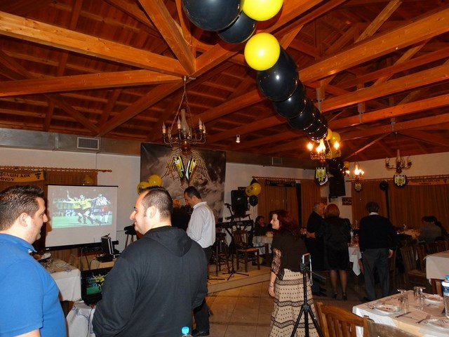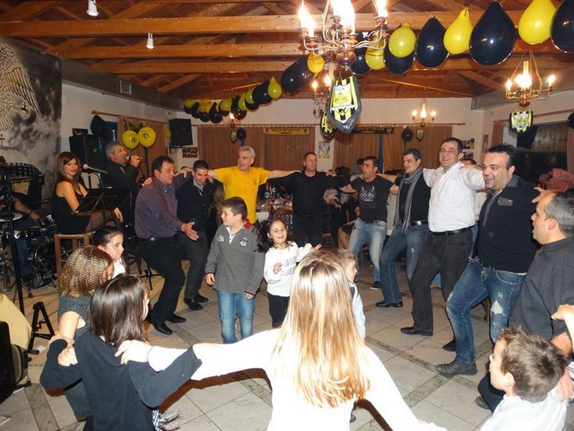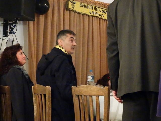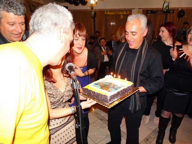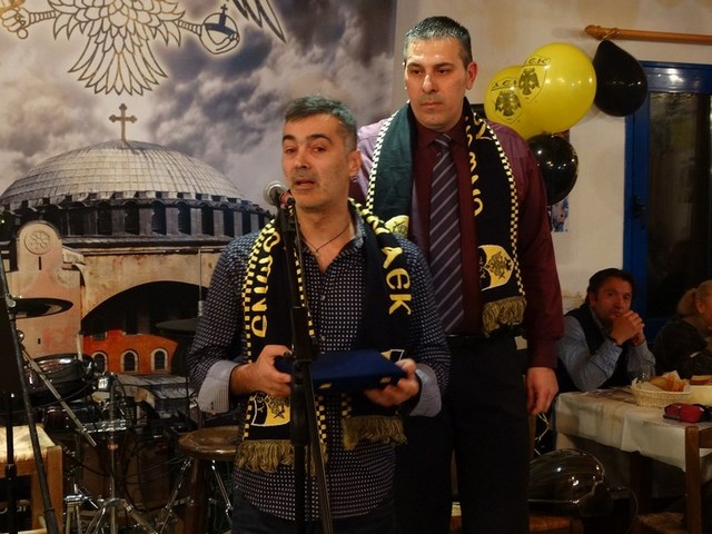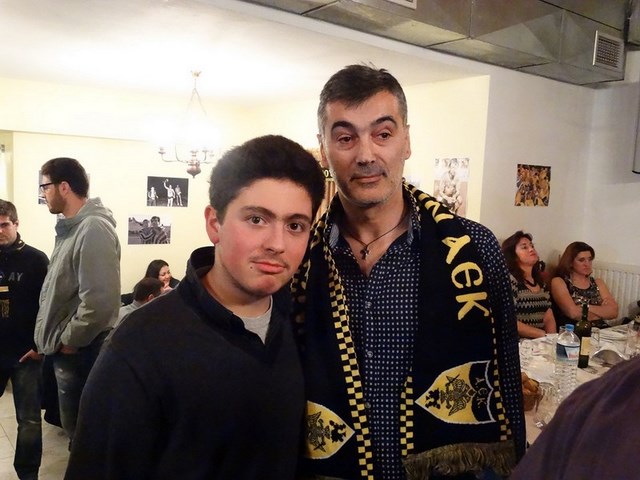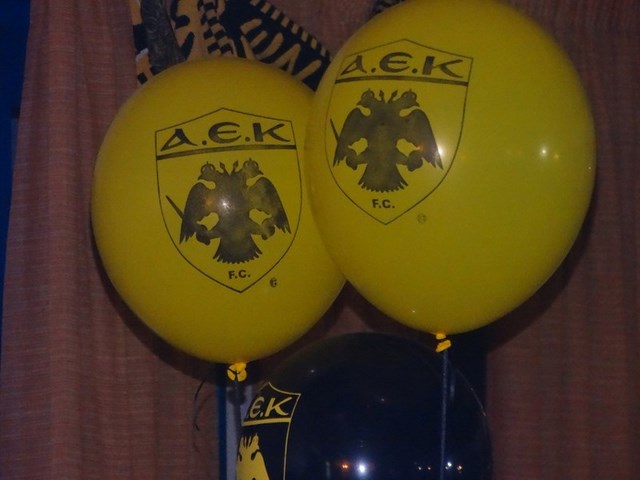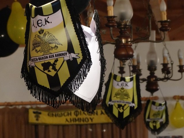 Υ/Γ: ´Αλλη μια ευχάριστη στιγμή της βραδιάς, ήταν όταν ο πρόεδρος της Ένωσης Φίλων ΑΕΚ Λήμνου, Απόστολος Παπάμαλης, έσβησε τα κεράκια της γενέθλιας, κιτρινόμαυρης - εννοείται - τούρτας του. Η γλυκύτατη σύζυγος του Ελένη, του ετοίμασε την έκπληξη και κείνος το καταδιασκέδασε.