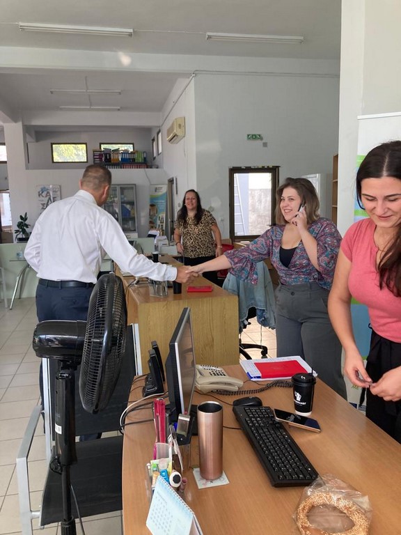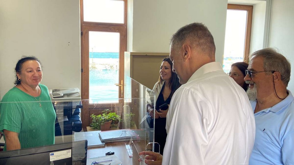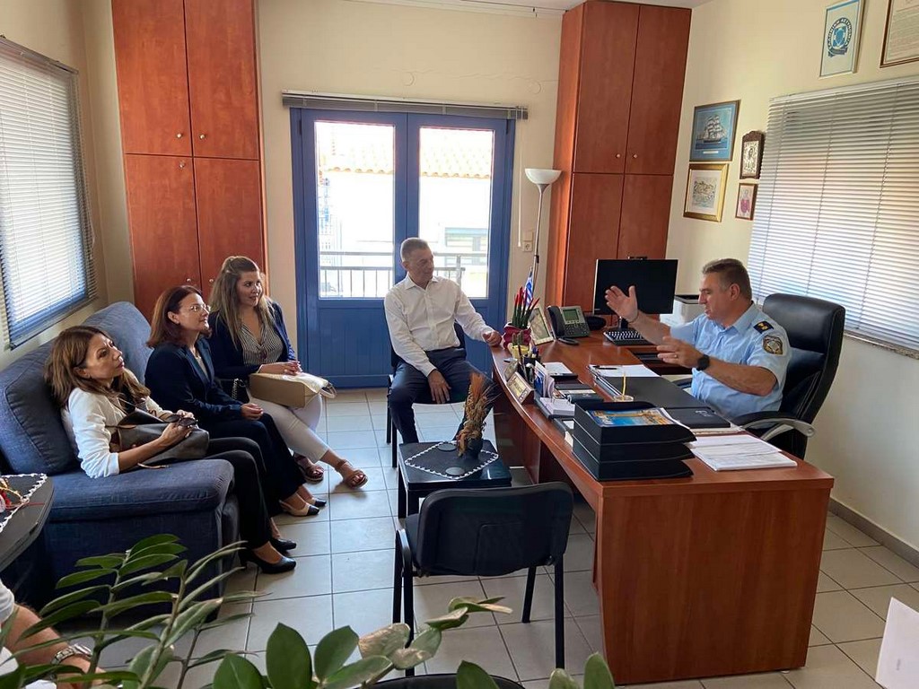 Στη συνέχεια, επισκέφθηκε το Λιμεναρχείο της Μύρινας, όπου είχε μια εποικοδομητική συζήτηση με τον λιμενάρχη για το έργο του Λιμεναρχείου, τις ελλείψεις στο προσωπικό, αλλά και τα καθημερινά προβλήματα που αντιμετωπίζουν, εστιάζοντας στις πρακτικές βελτίωσης των υπηρεσιών προς όφελος των κατοίκων.