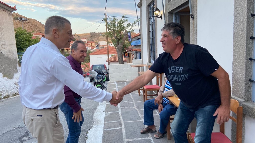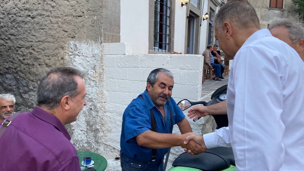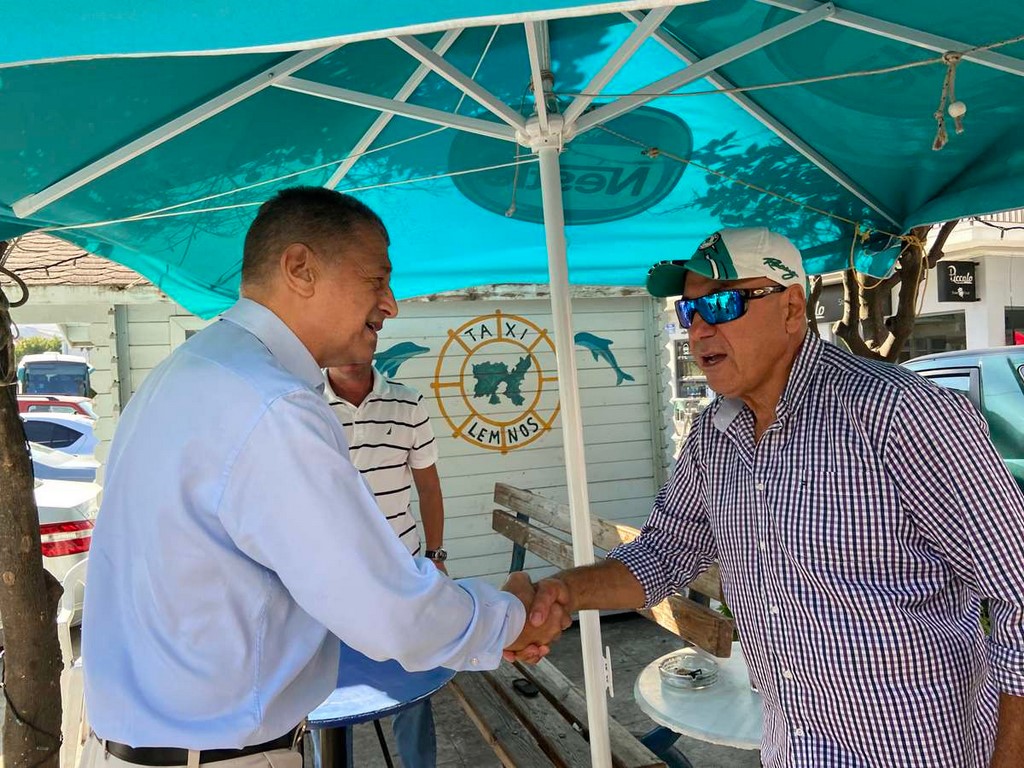 Τέλος η περιοδεία του στο νησί της Λήμνου ολοκληρώθηκε με επισκέψεις στα χωριά Μούδρο, Ρωμανό, Ρεπανίδι, Κοντοπούλι, Καλλιόπη, Παναγία και Πλάκα, συναντώντας και συζητώντας με κατοίκους σε πολύ θερμό κλίμα.