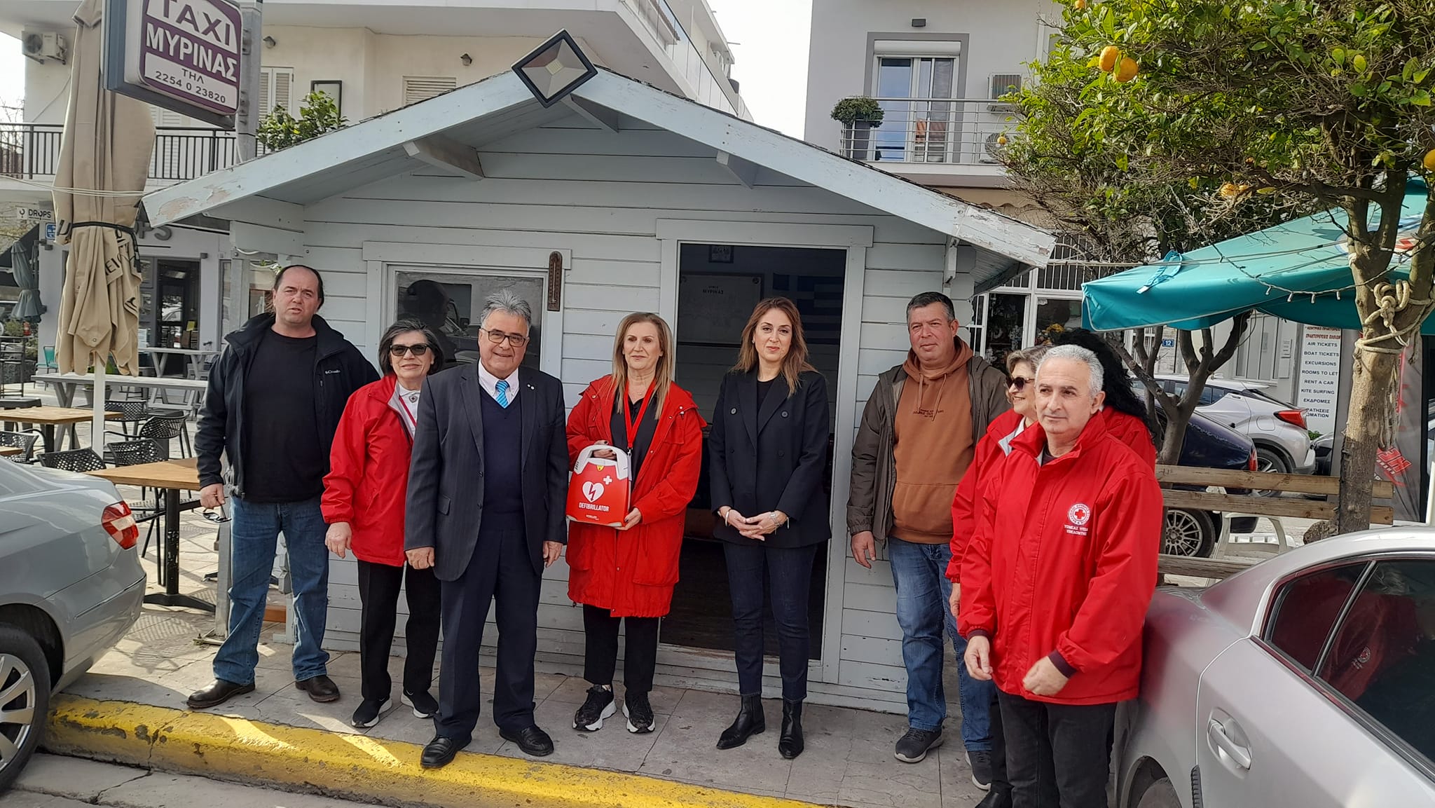 Υπενθυμίζεται οτι o ΕΕΣ εχει τοποθετήσει άλλους δυο απινιδωτές στη Μύρινα, στη Λεωφόρο Δημοκρατίας και στην Αγορά της Μύρινας.