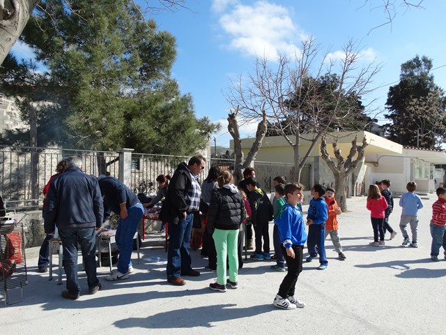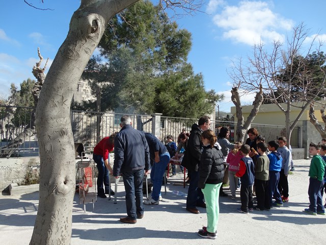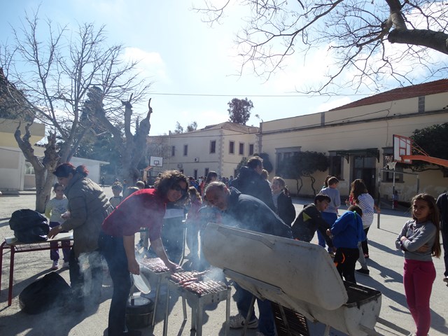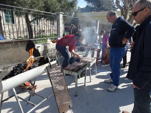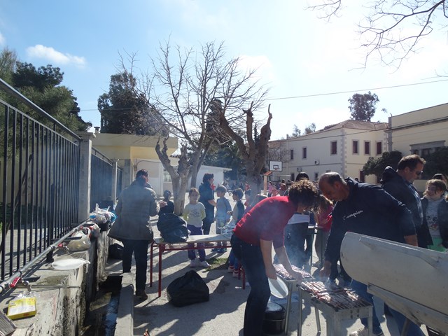 Στην αυλή του σχολείου από νωρίς στήθηκαν οι ψησταριές και τα κάρβουνα.. πήραν φωτιά. Η χαρά και ο ενθουσιασμός των παιδιών, για αυτό το διαφορετικό μάθημα, ήταν μεγάλη.