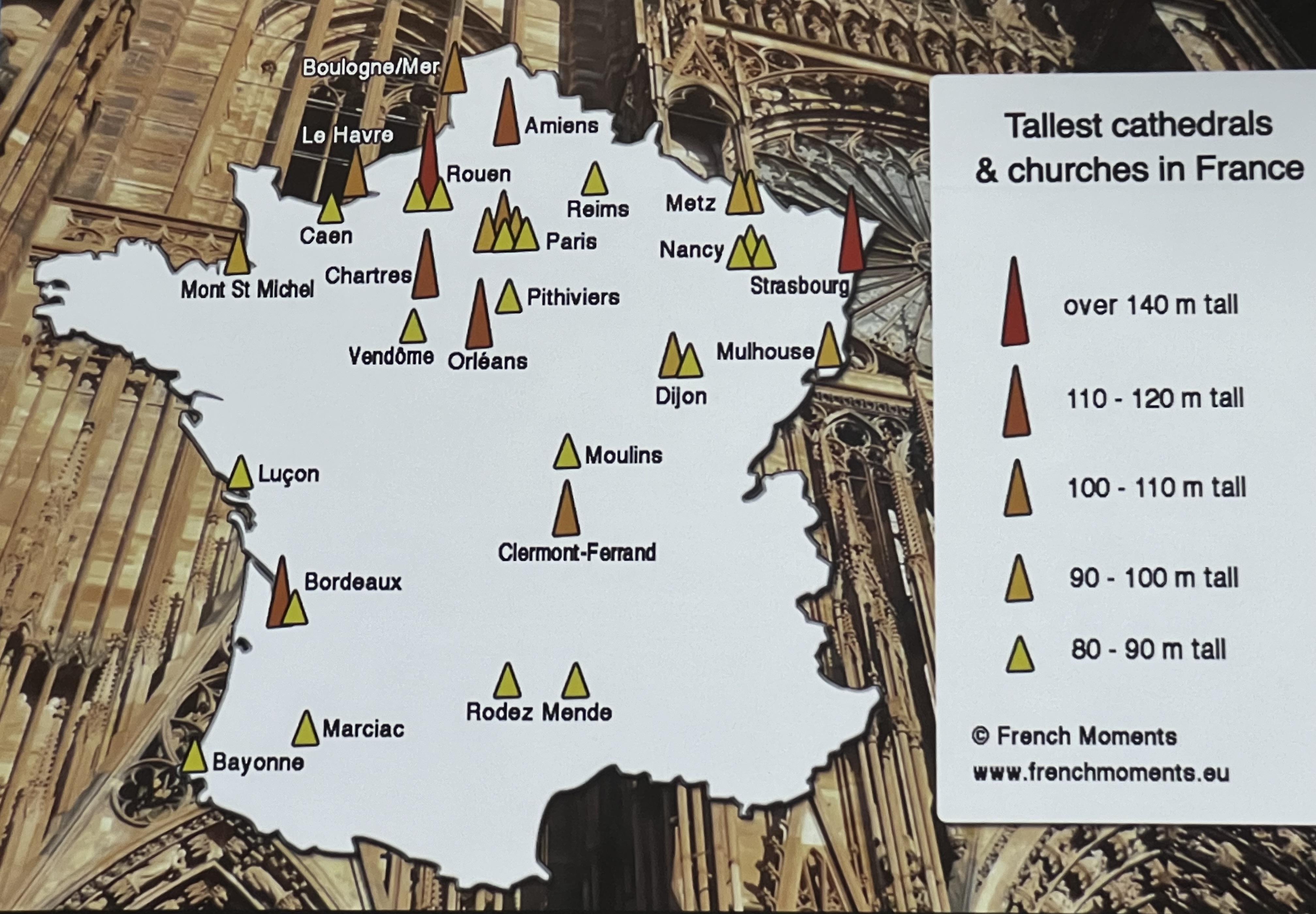Πασίγνωστο, επίσης, παράδειγμα, η Παναγία των Παρισίων, η Νοτρ Νταμ ντε Παρί. Πρόκειται για τον Μητροπολιτικό Ρωμαιοκαθολικό Ναό του Παρισιού και αποτελεί ένα από τα πλέον θαυμαστά αρχιτεκτονικά μνημεία του λεγόμενου οξυκόρυφου ή γοτθικού ρυθμού.