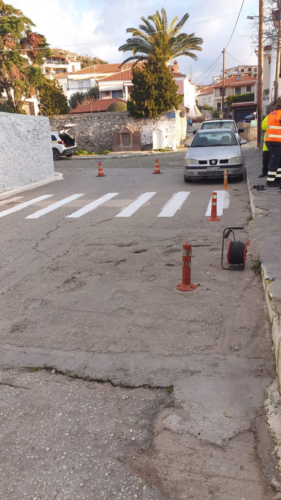 Παρεμβάσεις γίνονται, επίσης, στο 3ο Δημοτικό Σχολείο της Μύρινας, σε σημείο που τα παιδιά όταν προσέρχονται ή αποχωρούν από το σχολείο, σκοντάφτουν, αφενός στα παρκαρισμένα οχήματα, αφετέρου στα δέντρα πάνω στα πεζοδρόμια.