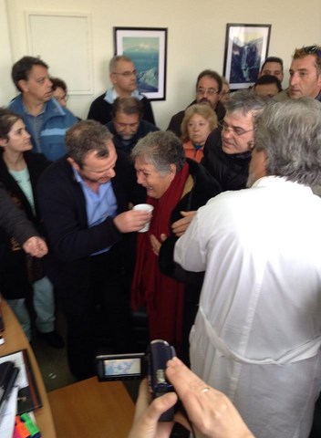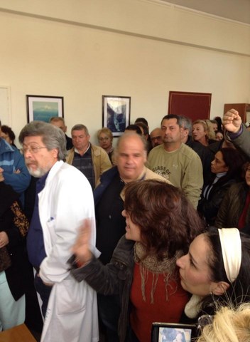 Το ενδιαφέρον της συγκέντρωσης, μεταφέρθηκε στο γραφείο της Υποδιοικήτριας του νοσοκομείου κας Λυμπέρη, όπου και ξεκίνησε μαραθώνιος διαπραγματεύσεων. Όχι πολύ ώρα μετά, στο γραφείο της υποδιοικήτριας, κατέφθασε ο Δήμαρχος Λήμνου με τον Εντεταλμένο Περιφερειακό Σύμβουλο, άρτι αφηχθέντες, από το ταξίδι τους στην Αθήνα για άλλο θέμα.