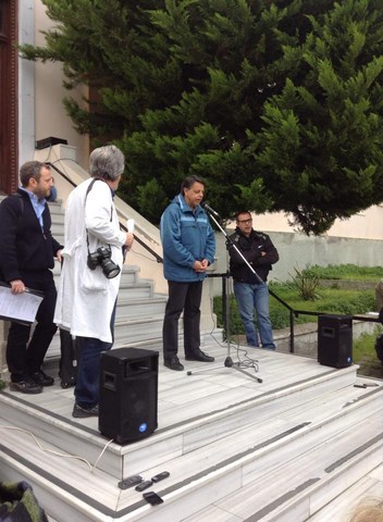 Το ραντεβού ήταν για τις 09:30 το πρωί, στον προαύλιο χώρο του νοσοκομείου. Όντως, οι εκπρόσωποι των φορέων προσήλθαν μαζικά και με αποφασιστικότητα αρνήθηκαν να επιτρέψουν στον ένα εκ των δυο ψυχιάτρων, τον κ. Κατσιγιαννόπουλο, να μεταβεί στο αεροδρόμιο, για να ταξιδέψει στη Μυτιλήνη, υλοποιώντας έτσι την απόφαση του Διοικητή του Βοστάνειου κου Μουζάλα.