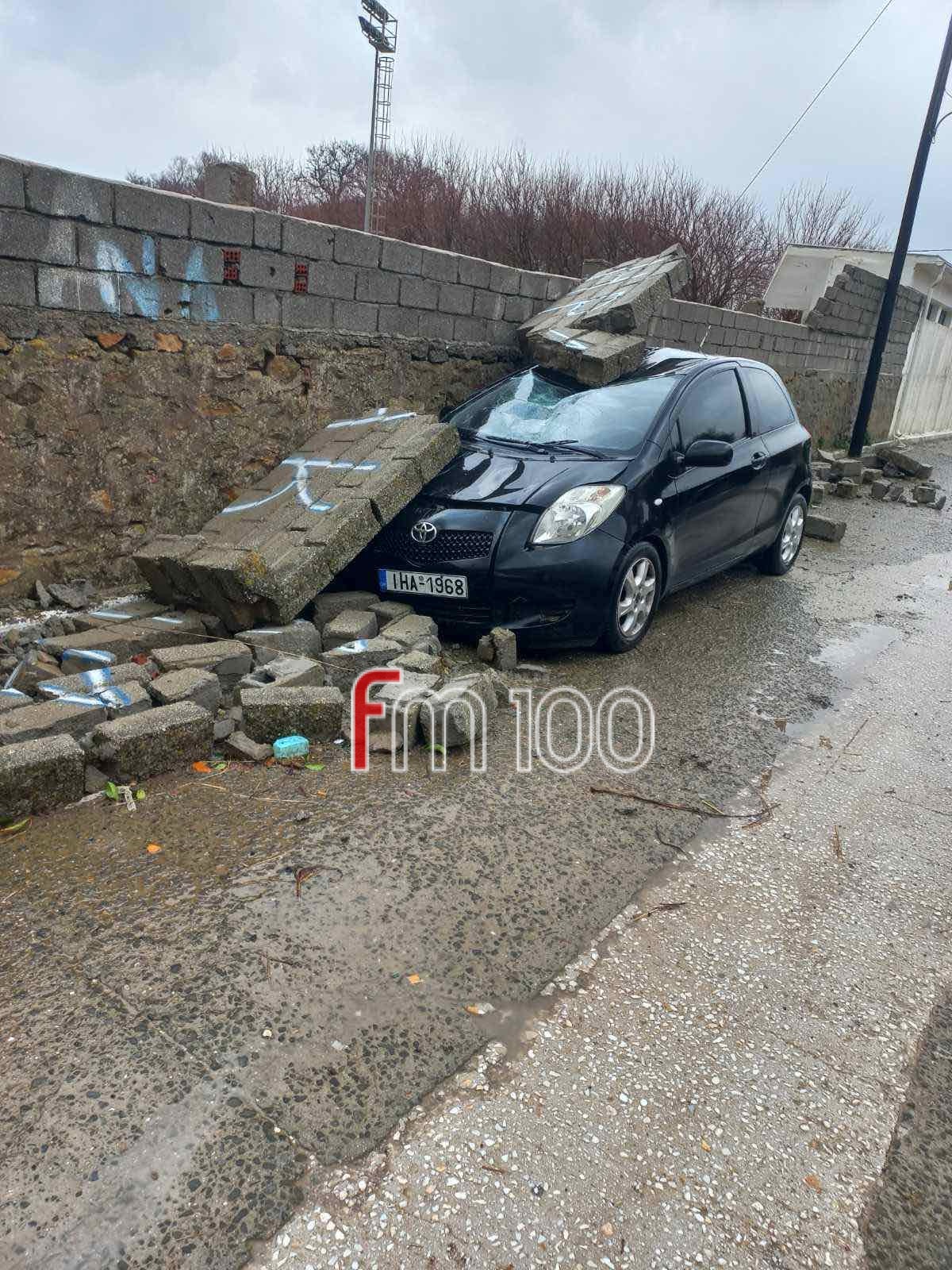 Επίσης, δύο οχήματα καταπλακώθηκαν από πτώση τοιχίο του γηπέδου Ατσικής, ενώ η πυροσβεστική δέχτηκε κλήση και για απάντληση υδάτων από υπόγειο σπιτιού στην περιοχή Παναγία του Τσας.