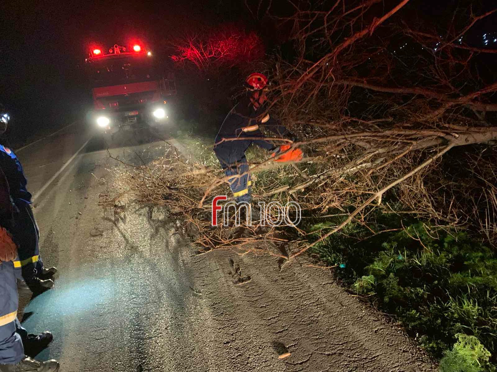 Από τους ισχυρούς ανέμους, δέντρα κόπηκαν στο Πεδινό και στην Ατσική, ένα στέγαστρο στο Πλατύ αποκολλήθηκε ενώ η Πυροσβεστική χρειάστηκε να παρέμβει προκειμένου να απεγκλωβίσει τέσσερα άτομα στην περιοχή Καραμανλίδικα.