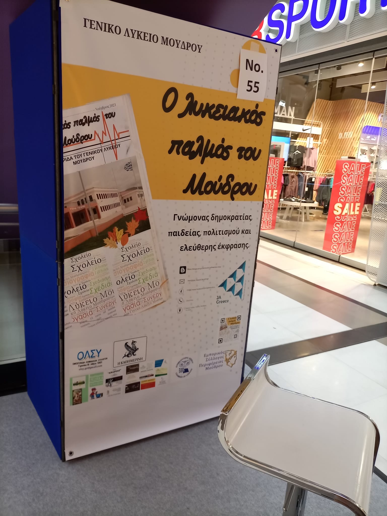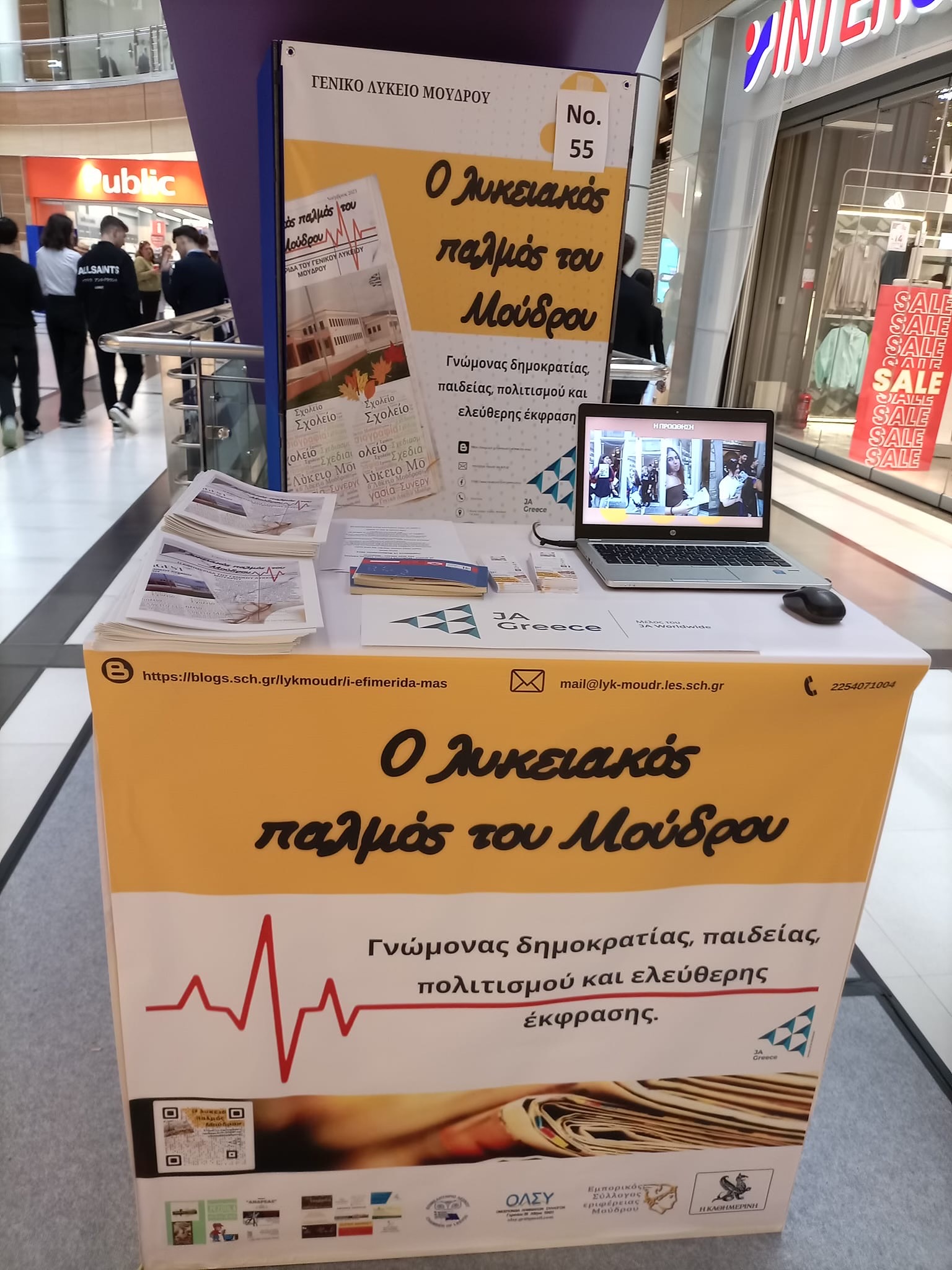 Ευχαριστούμε θερμά για τη στήριξη την εφημερίδα "Καθημερινή", το Επιμελητήριο Λέσβου, τον Εμπορικό Σύλλογο Μούδρου, και την Ομοσπονδiα Λημνiακών Συλλόγων (Ο.Λ.ΣΥ), καθώς και όλους όσους μας βοήθησαν στο στήσιμο της επιχείρησης. Επίσης, ευχαριστούμε την Πρόεδρο του Συλλόγου Γονέων και Κηδεμόνων κ. Λαζαρίδη-Παλαιολόγου Ευαγγελία για τον εικαστικό σχεδιασμό του περιπτέρου, το οποίο ήταν ιδιαίτερα καλαίσθητο.