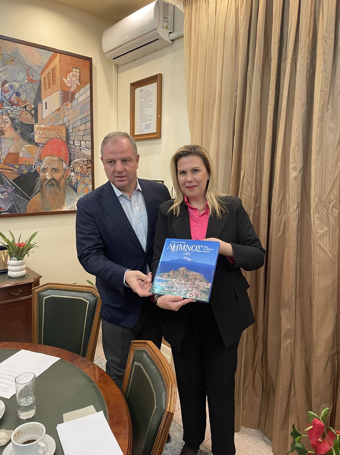 Με την ολοκλήρωση της συνάντησης, η Δήμαρχος παρέδωσε υπόμνημα στον Υφυπουργό, στο οποίο επισημαίνονται τα κρισιμότερα ζητήματα που απασχολούν τον αγροτοκτηνοτροφικό κόσμο της Λήμνου, ενώ του προσέφερε ένα φωτογραφικό λεύκωμα με εικόνες της Λήμνου.