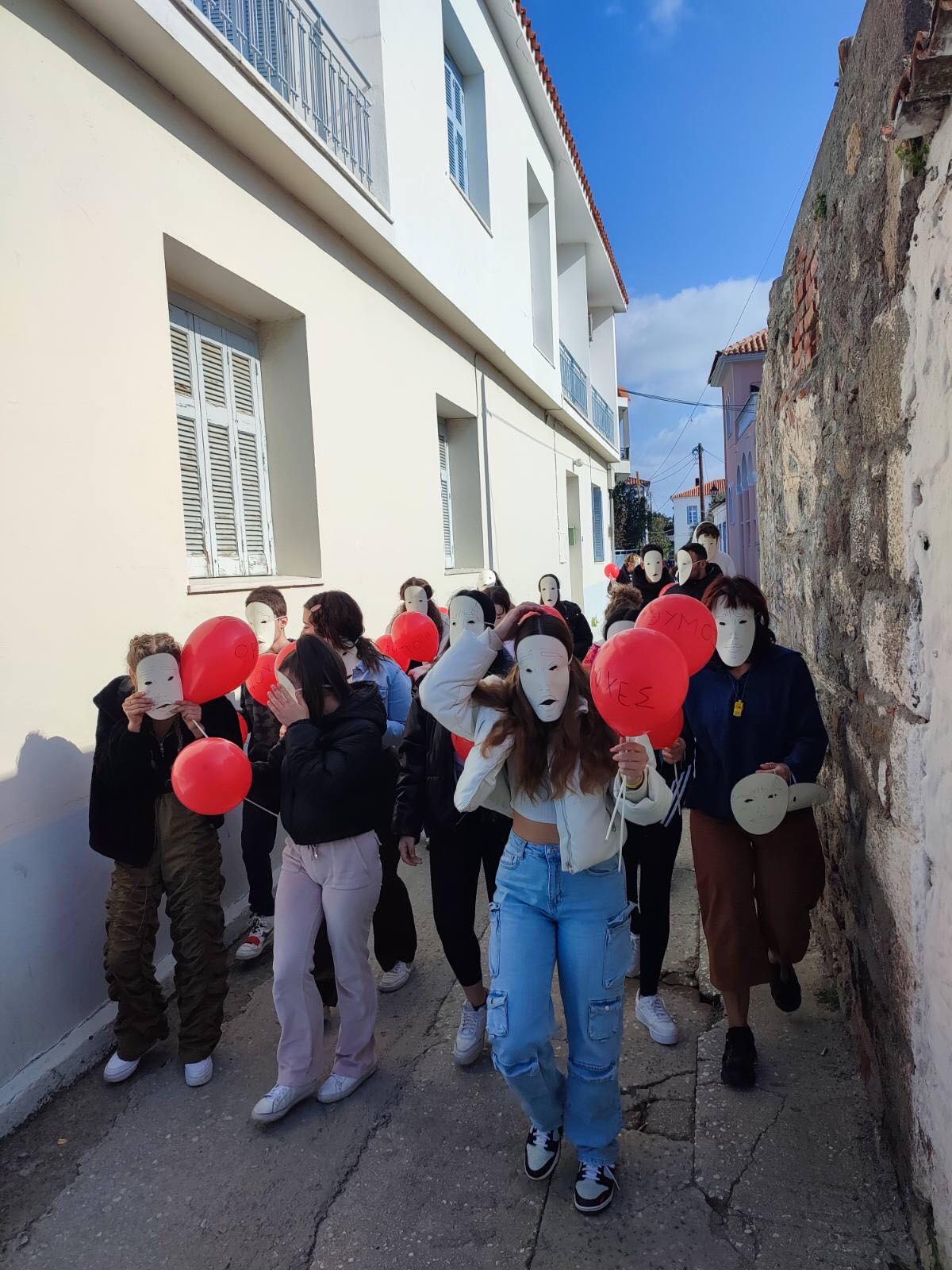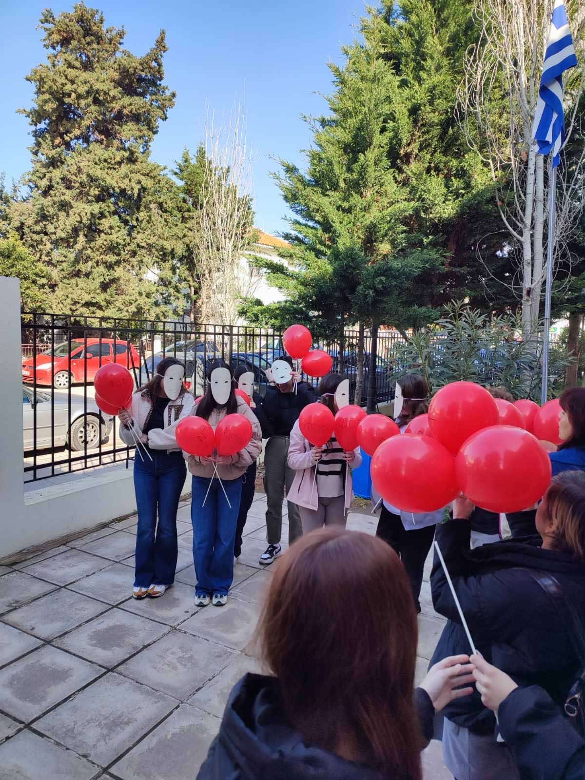 Τα παιδιά του ΕΠΑ.Λ και του Γ.Ε.Λ λοιπόν, με ωριμότητα και ενσυναίσθηση συμμετείχαν στη δράση που διοργανώθηκε εχτές, με αφορμή την ήμερα, φόρεσαν τις μάσκες της λύπης, κράτησαν τα μπαλόνια του φόβου, της οργής, του θυμού και μπήκαν για λίγο στη θέση των παιδιών που έχουν αισθανθεί έτσι, κάποια στιγμή στη ζωή τους.