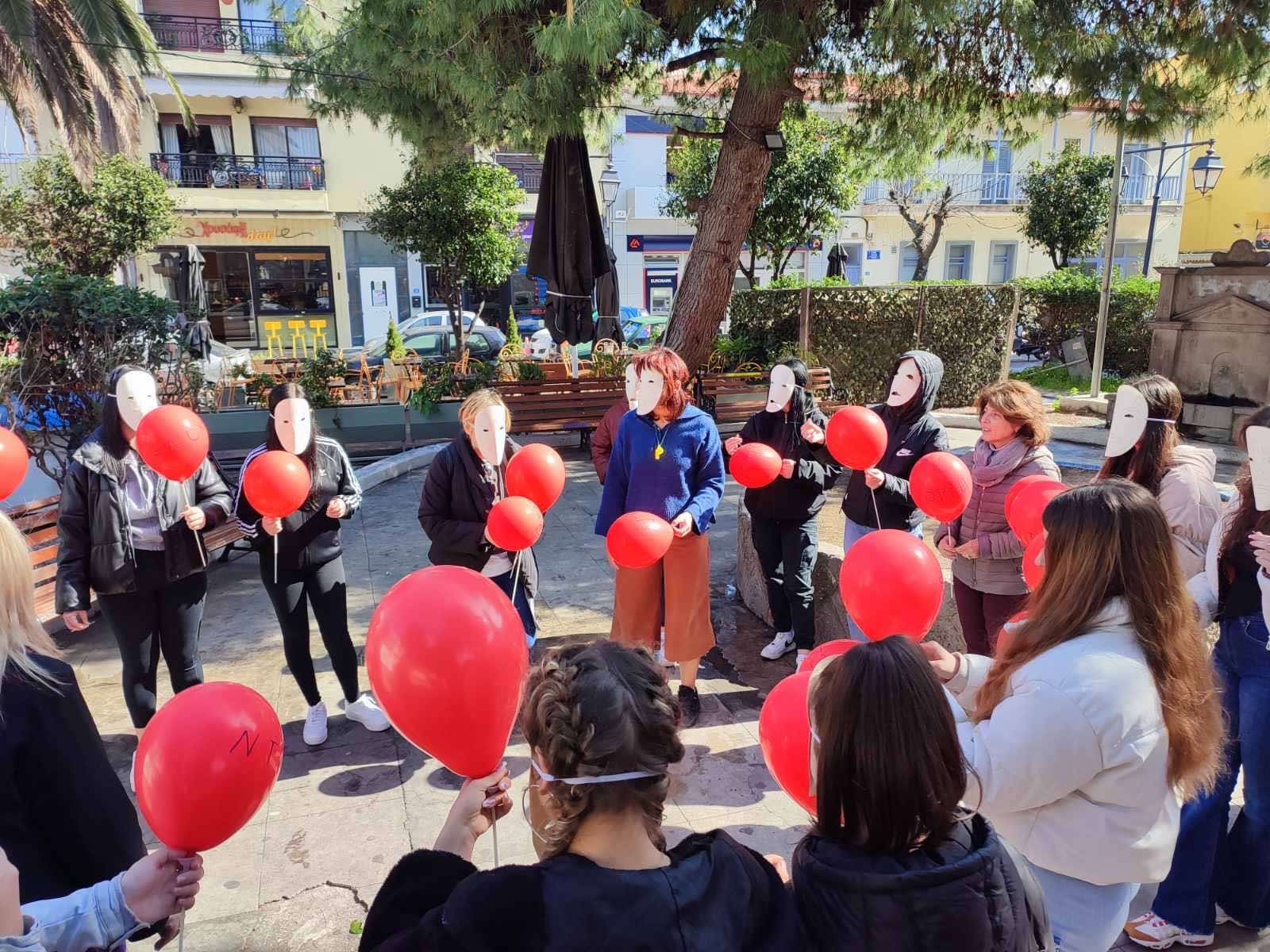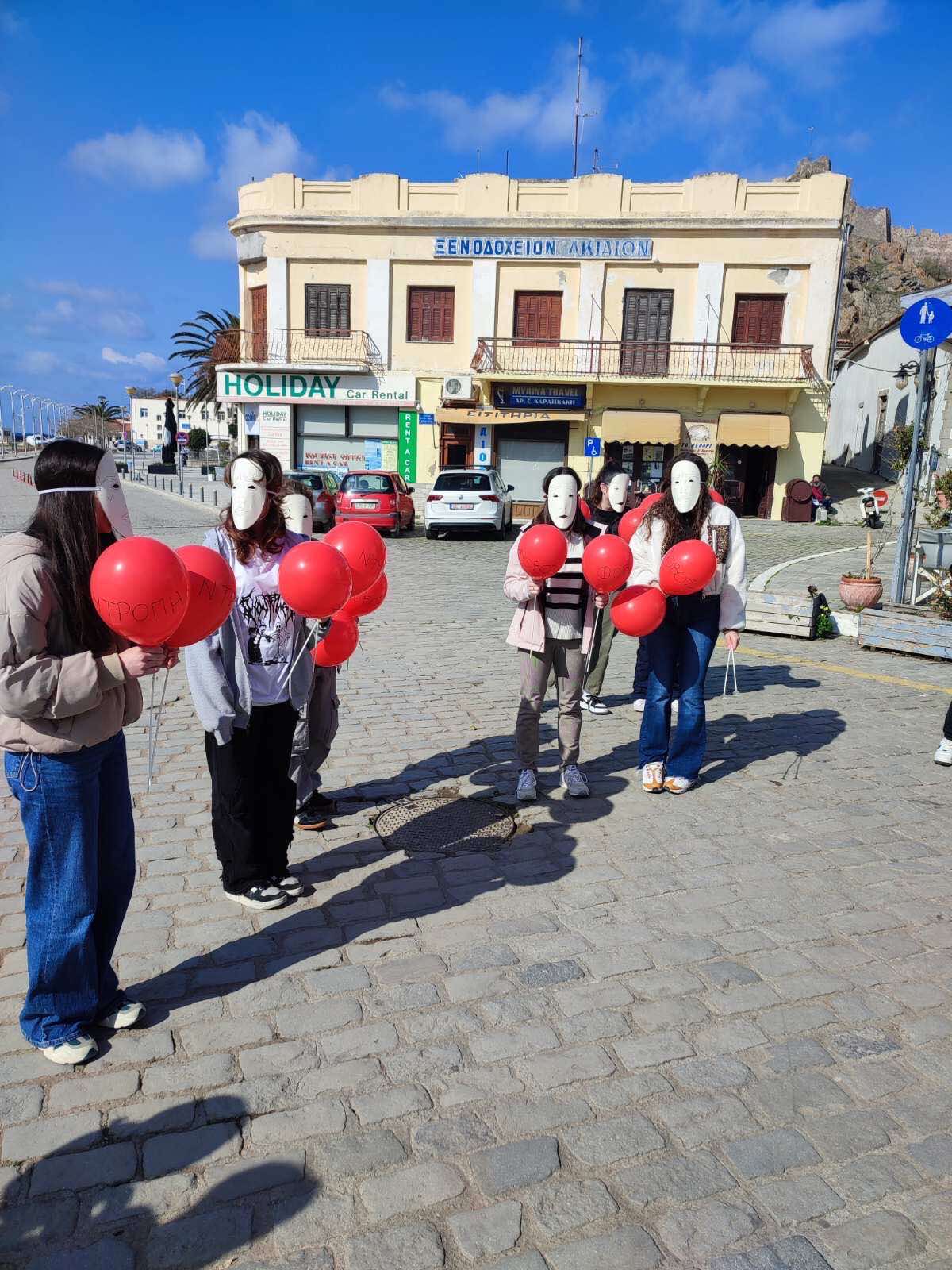 Κι όταν απ το σχολείο τους, αναπαριστώντας σε όλη τη διαδρομή τη συμπεριφορά του θύματος, έφτασαν στην πλατεία Υψιπύλης, την προκαθορισμένη ώρα, έσπασαν τα μπαλόνια φωνάζοντας «Σπάσε τη σιωπή. Μη φοβάσαι. Μίλα».